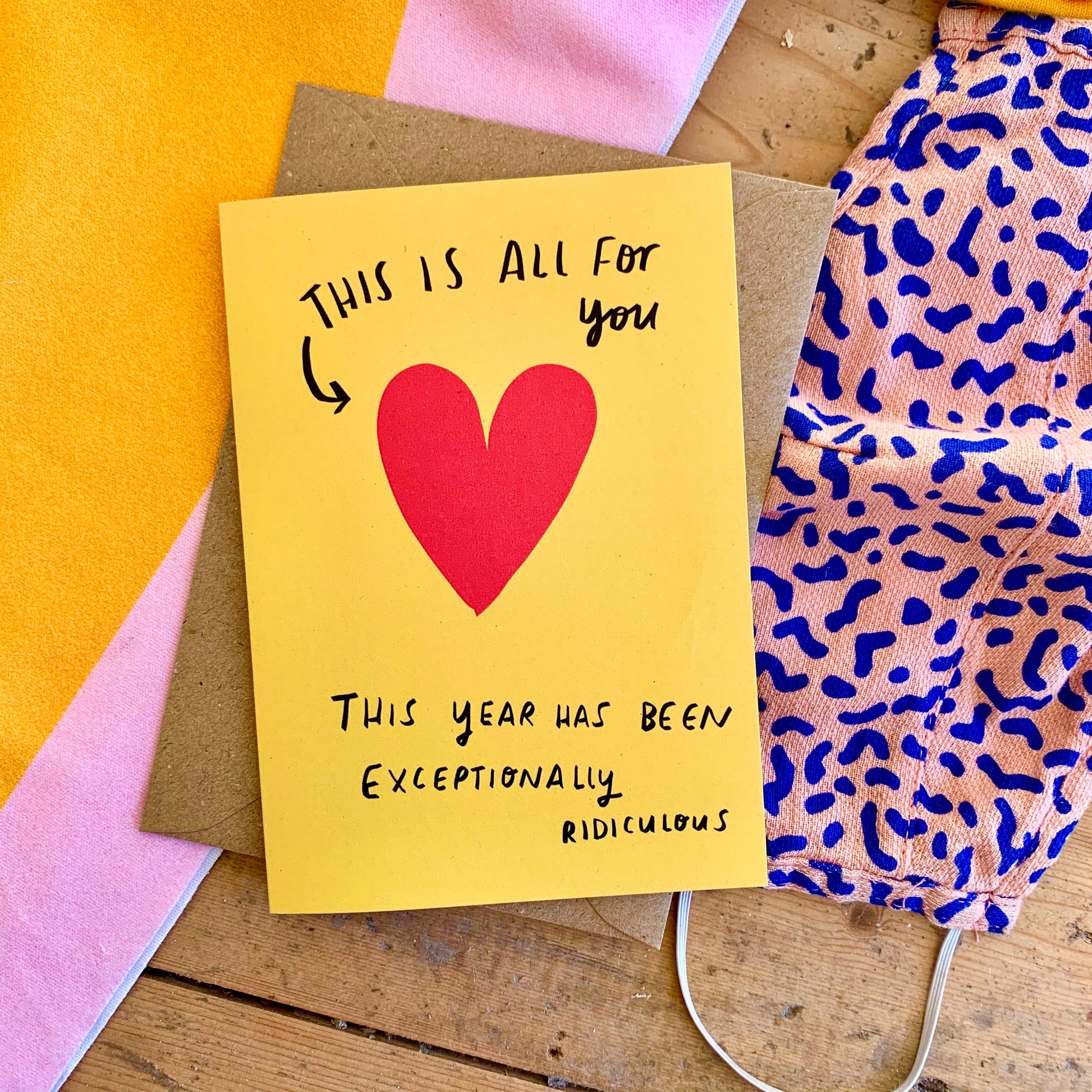 Standard A6 size greeting card designed by Nicola Rowlands and printed in the UK. Proudly printed on recycled card. Will be mailed to you in a hardback envelope and will include a brown recycled paper envelope. Card is blank inside for your own message. Cello bags made from cornstarch and are biodegradable.