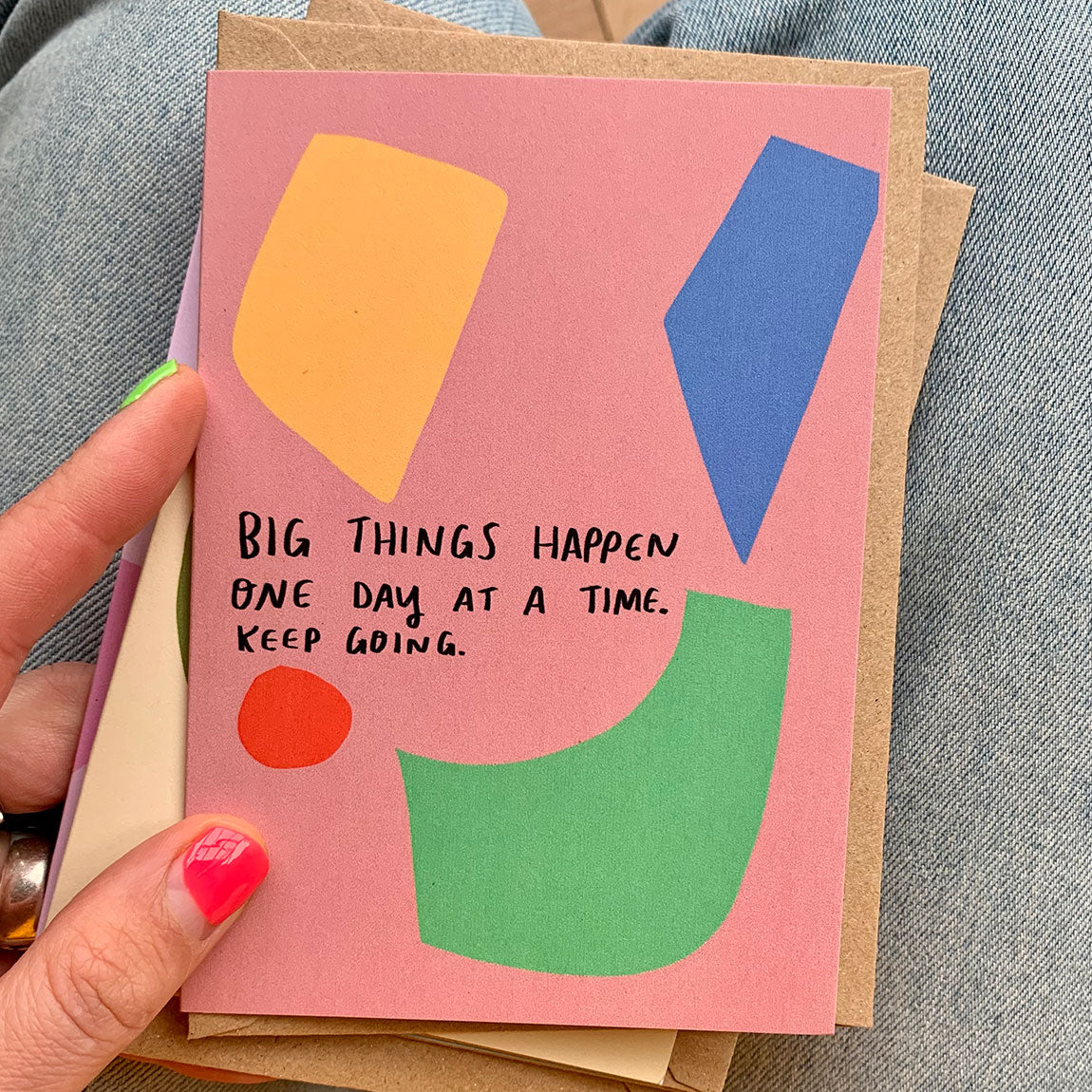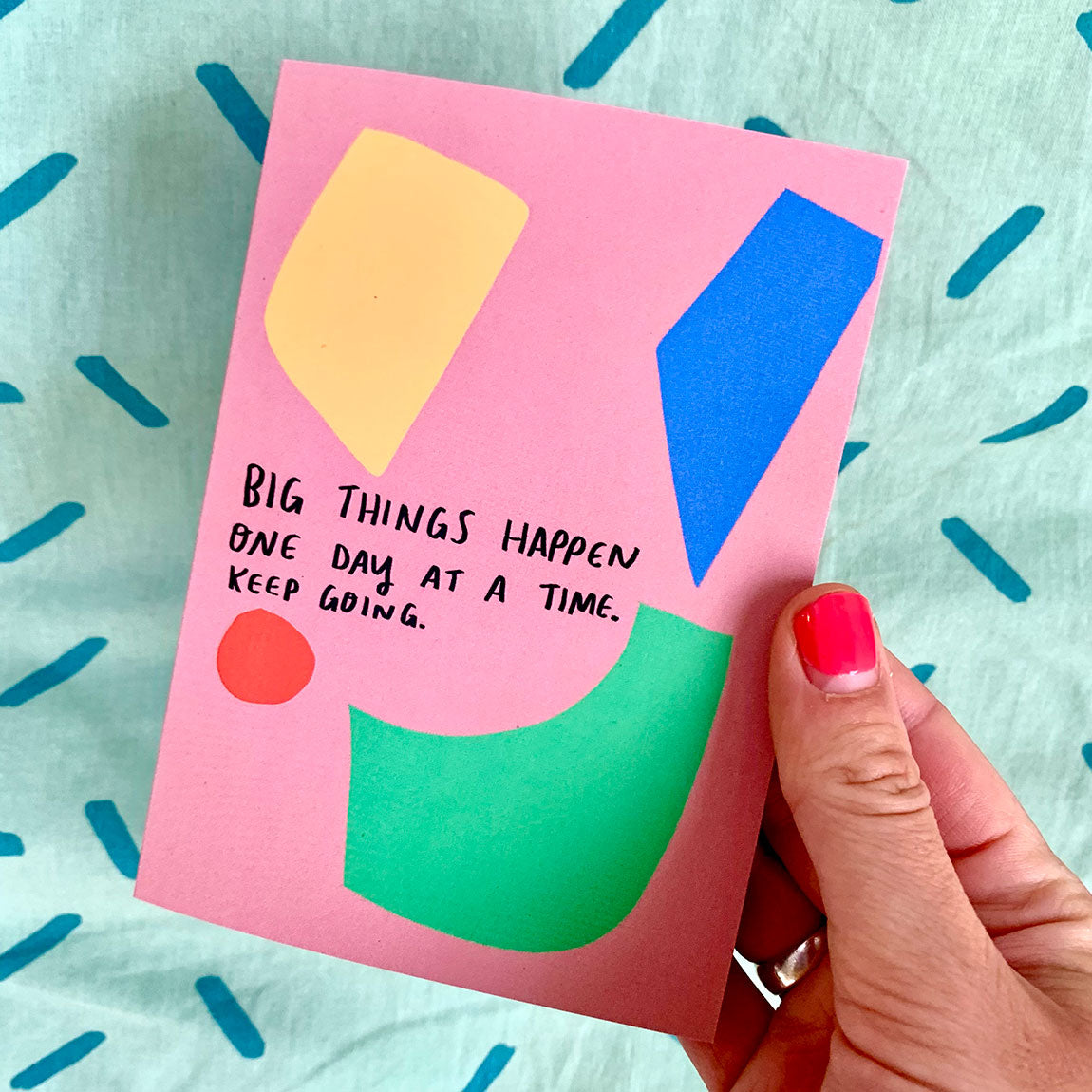 Standard A6 size greeting card designed by Nicola Rowlands and printed in the UK. Proudly printed on recycled card. Will be mailed to you in a hardback envelope and will include a brown recycled paper envelope. Card is blank inside for your own message. Cello bags made from cornstarch and are biodegradable.