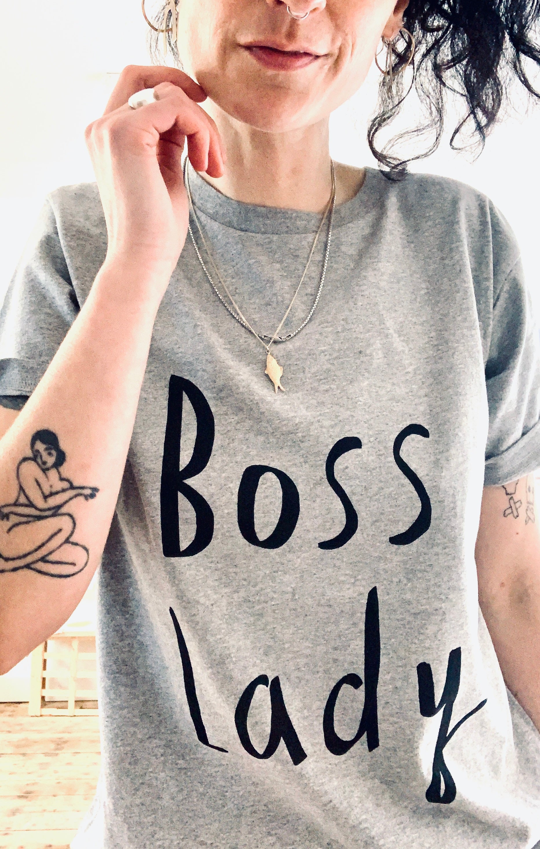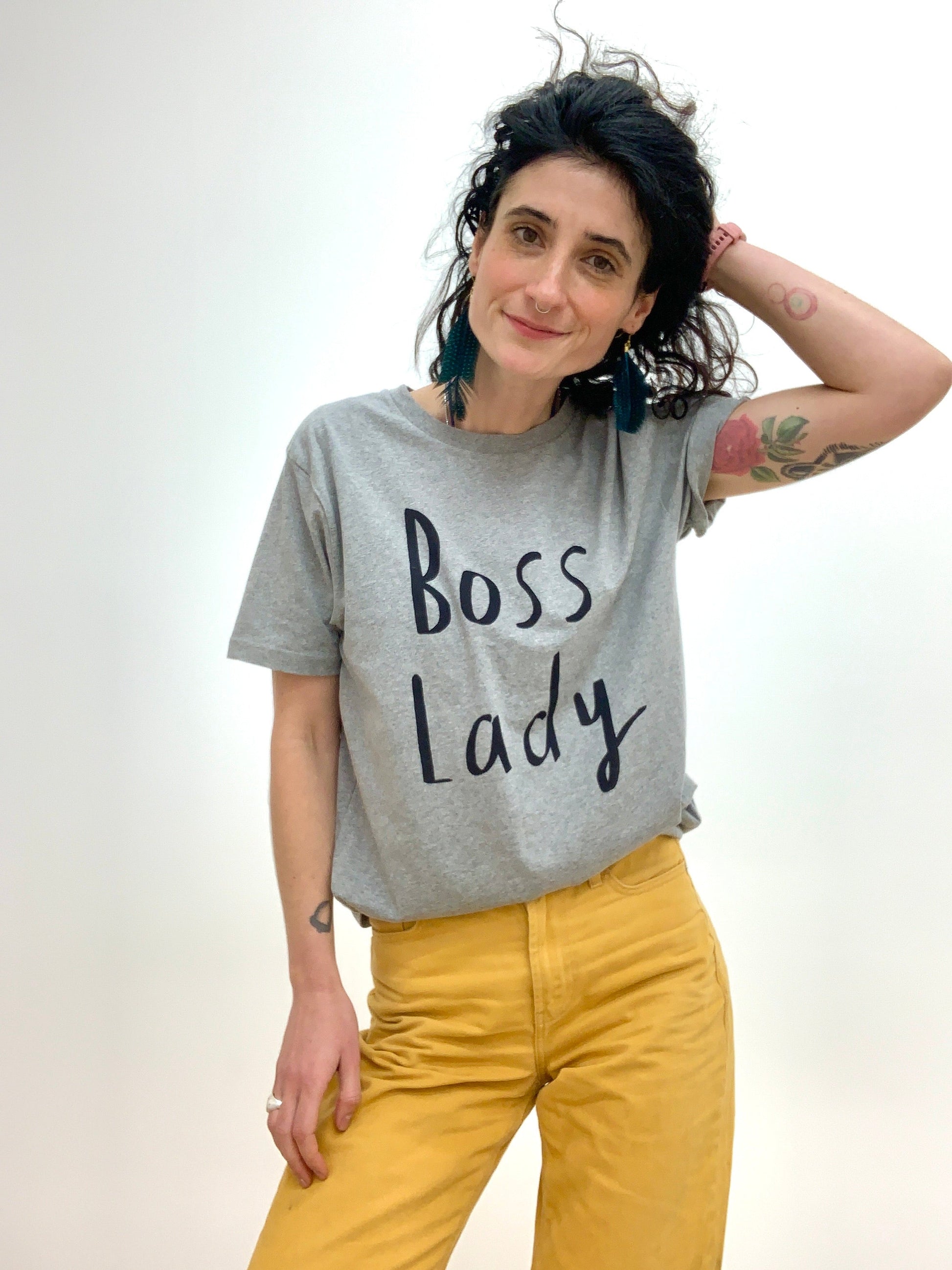 Boss Lady organic cotton t shirt in grey unisex