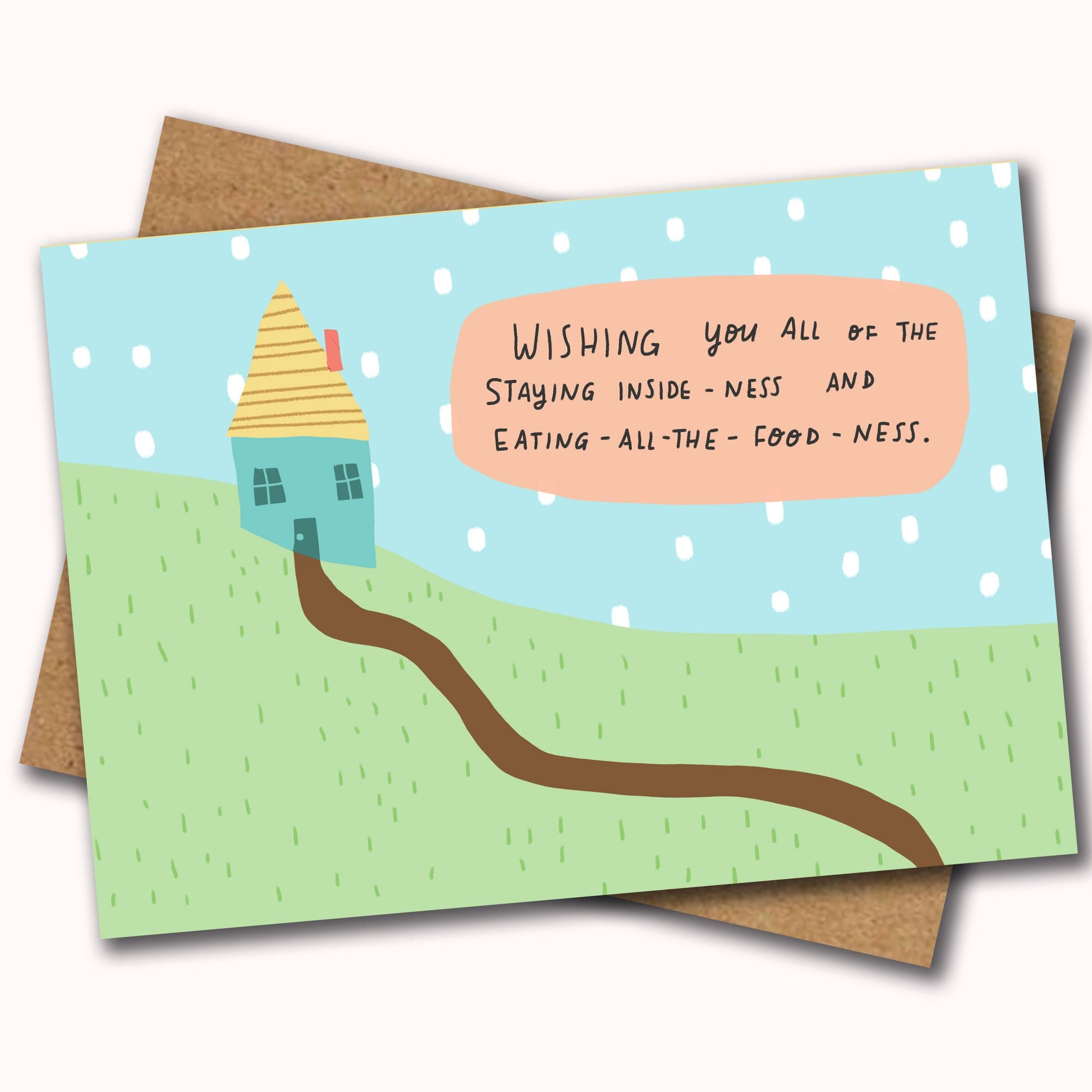 Wishing you all the good things about Staying In. (This design was originally a holiday card but due to the popularity during lockdown 2020 I have updated the design to make it more of a year-round scene!)