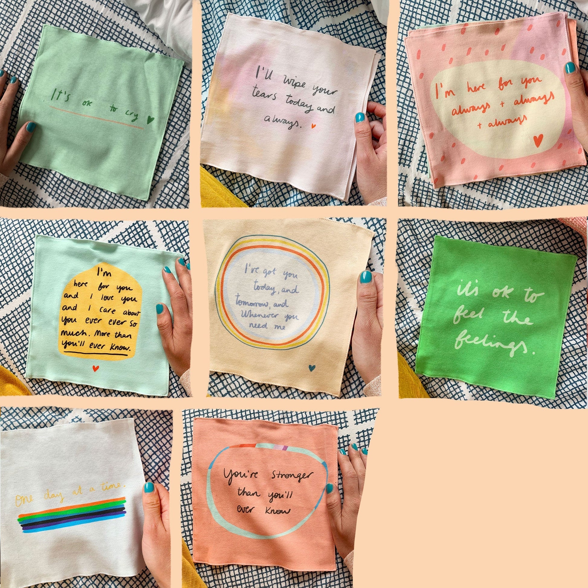 Made from gorgeous soft organic cotton knit, printed in Berlin and hand sewn in Manchester these hankies make the loveliest gifts for a best buddy, a bridesmaid or a husband-to-be. Machine washable for endless uses. (for best results we recommend line drying but they are fine to put in the dryer if needs must, we've tested them!)