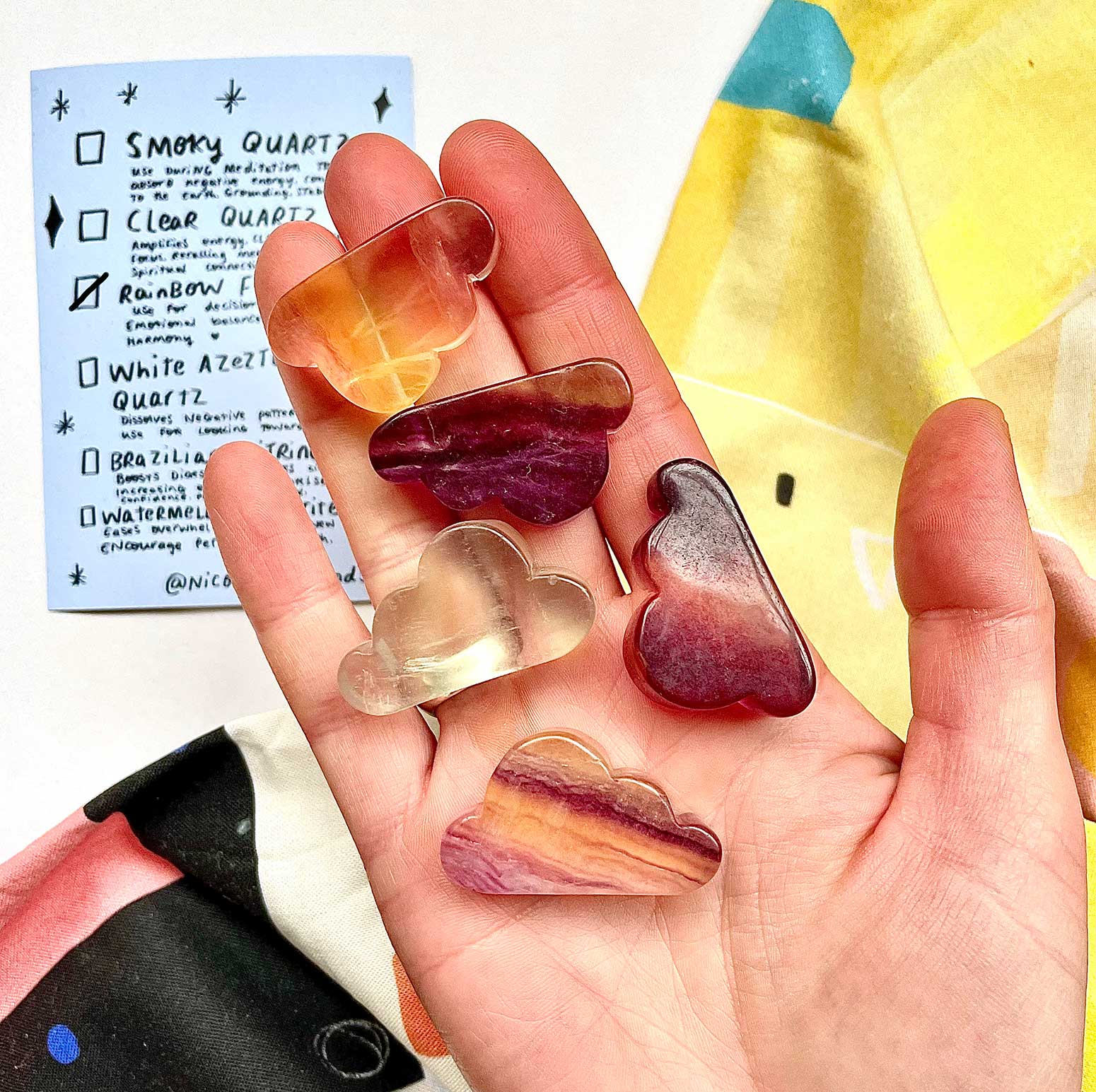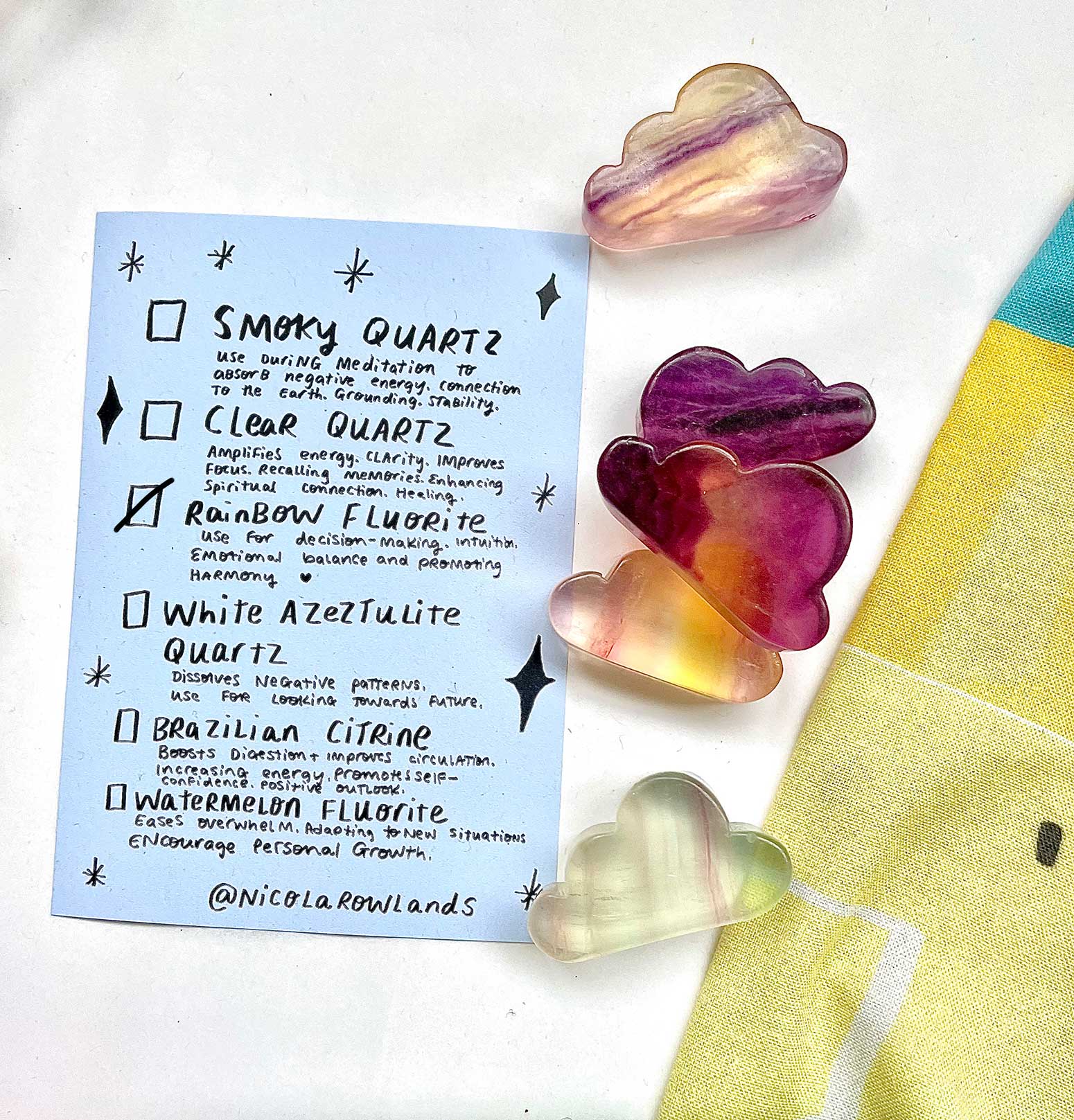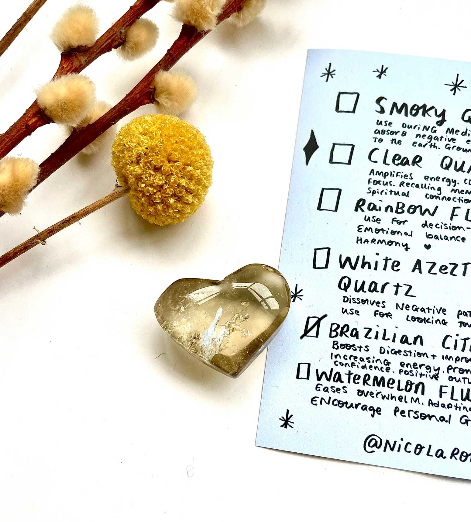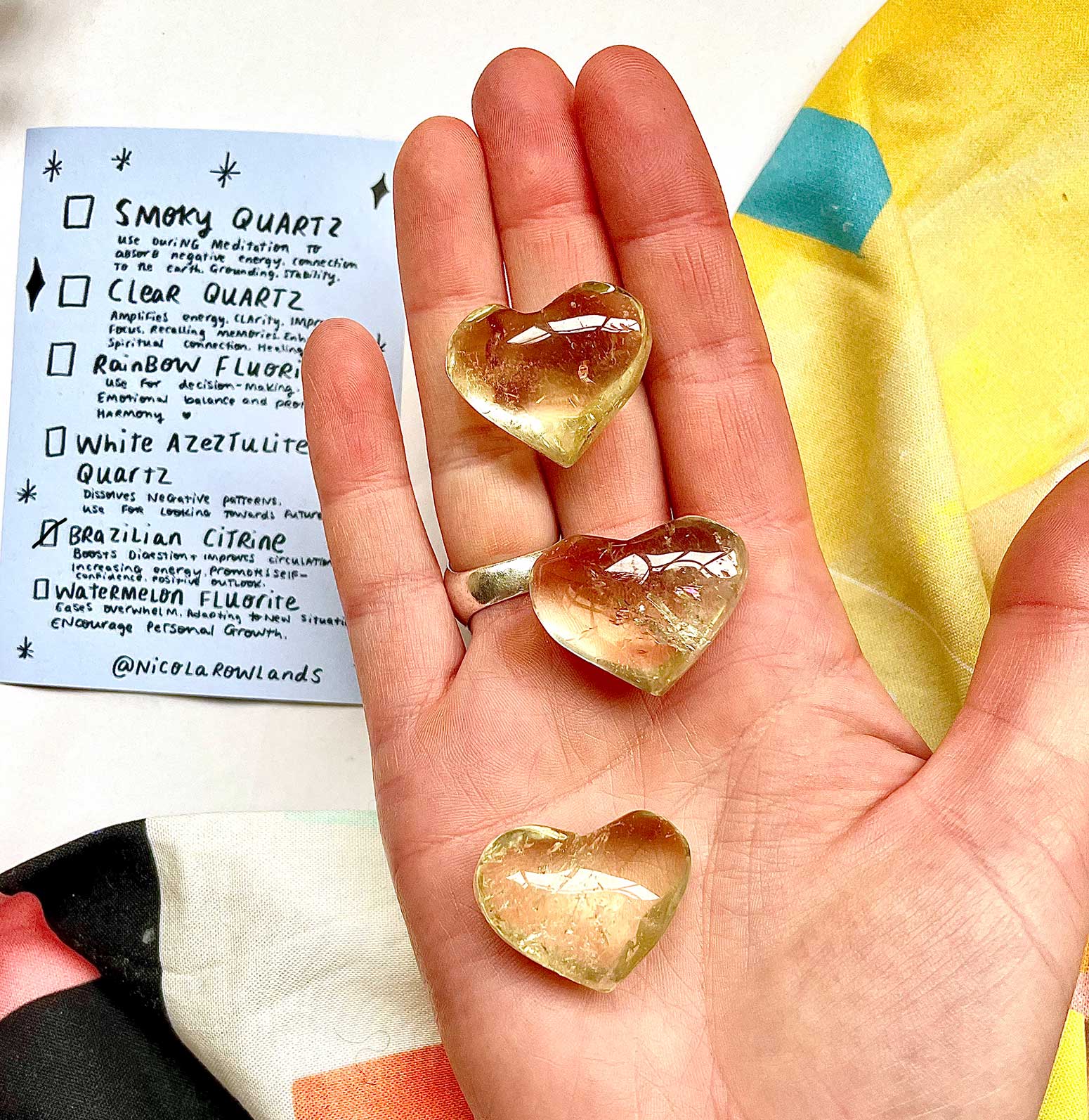Choose from five different cystals. Your order will arrive in a little fabric bag and will come with a small card explaining which crystal is enclosed and the properties of it.