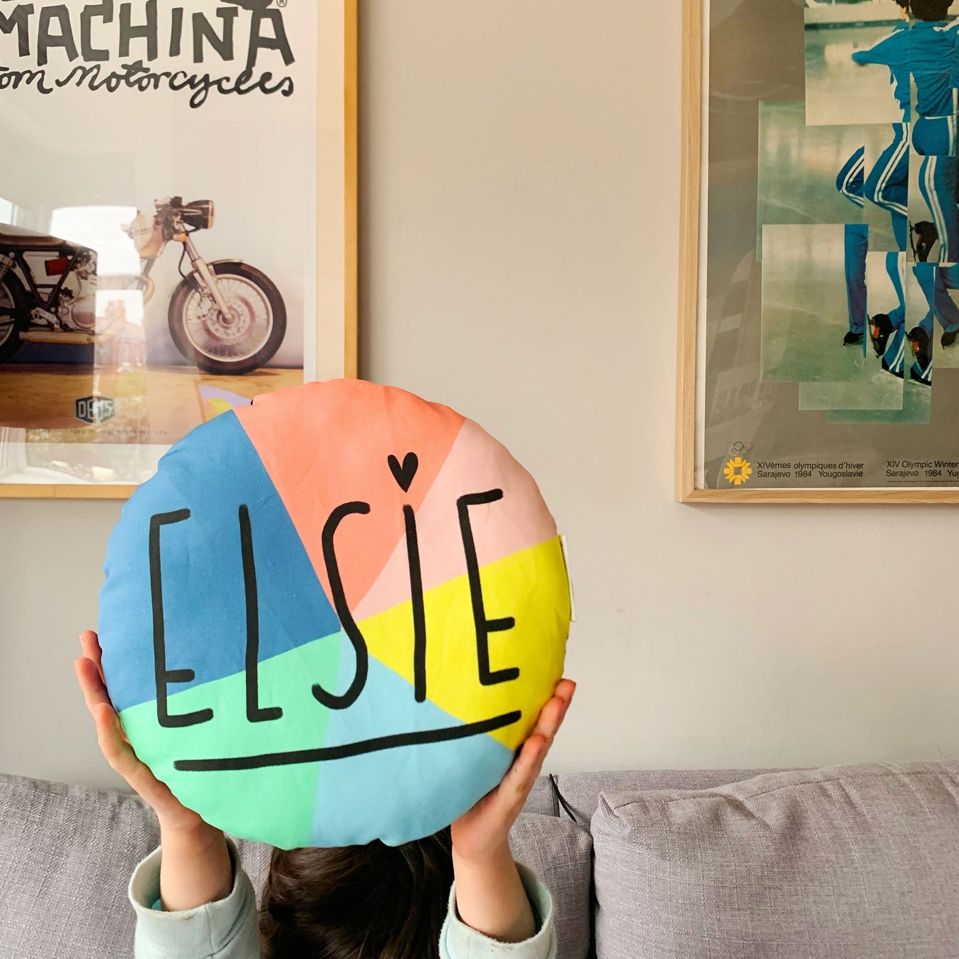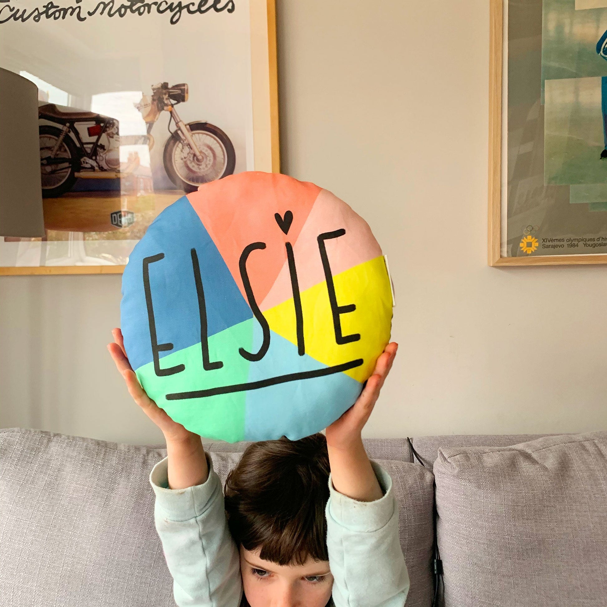 Please leave a note in the box at checkout with your name choice! Please also choose either multicoloured or plain background.