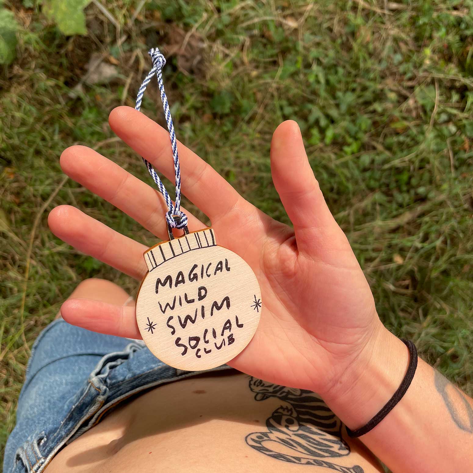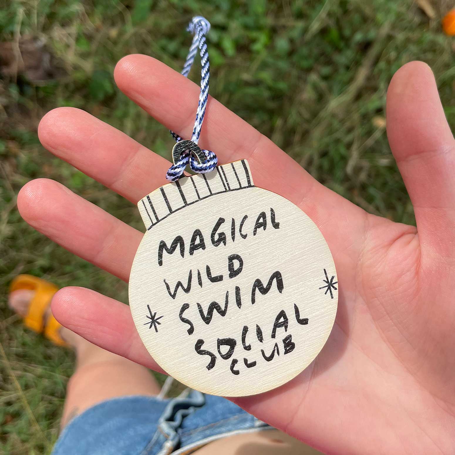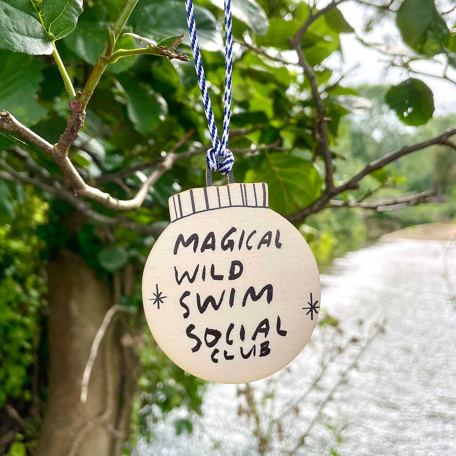 Magical Wild Swim Club wooden bauble ornament for christmas gifting