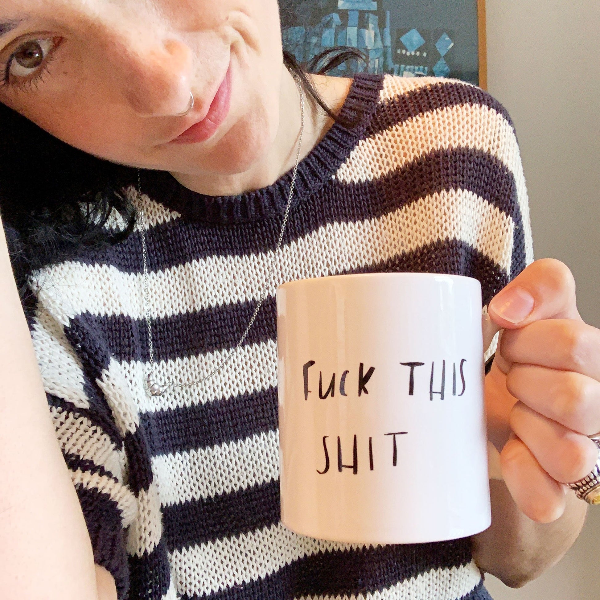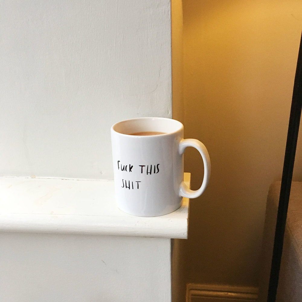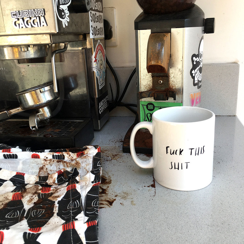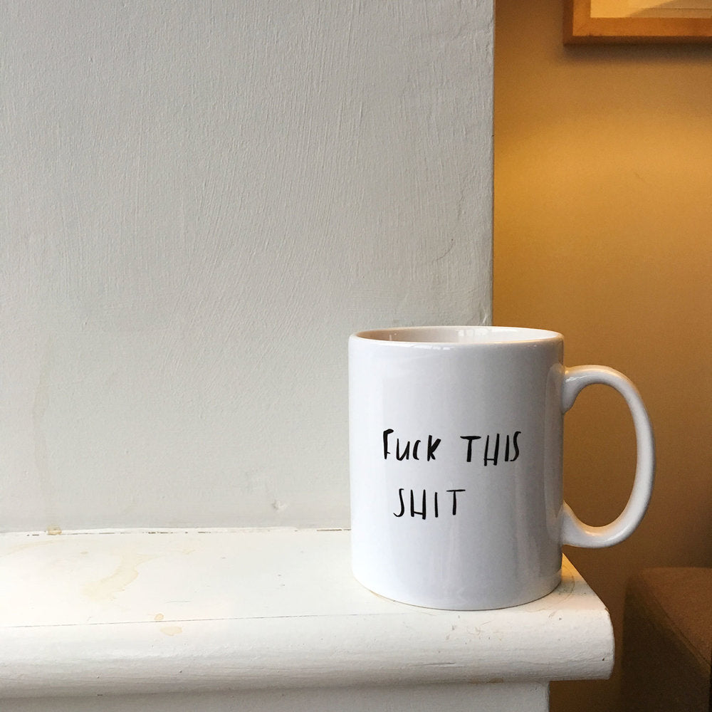 Front of mug reads "FUCK THIS SH!T" and back of mug has same exact design.