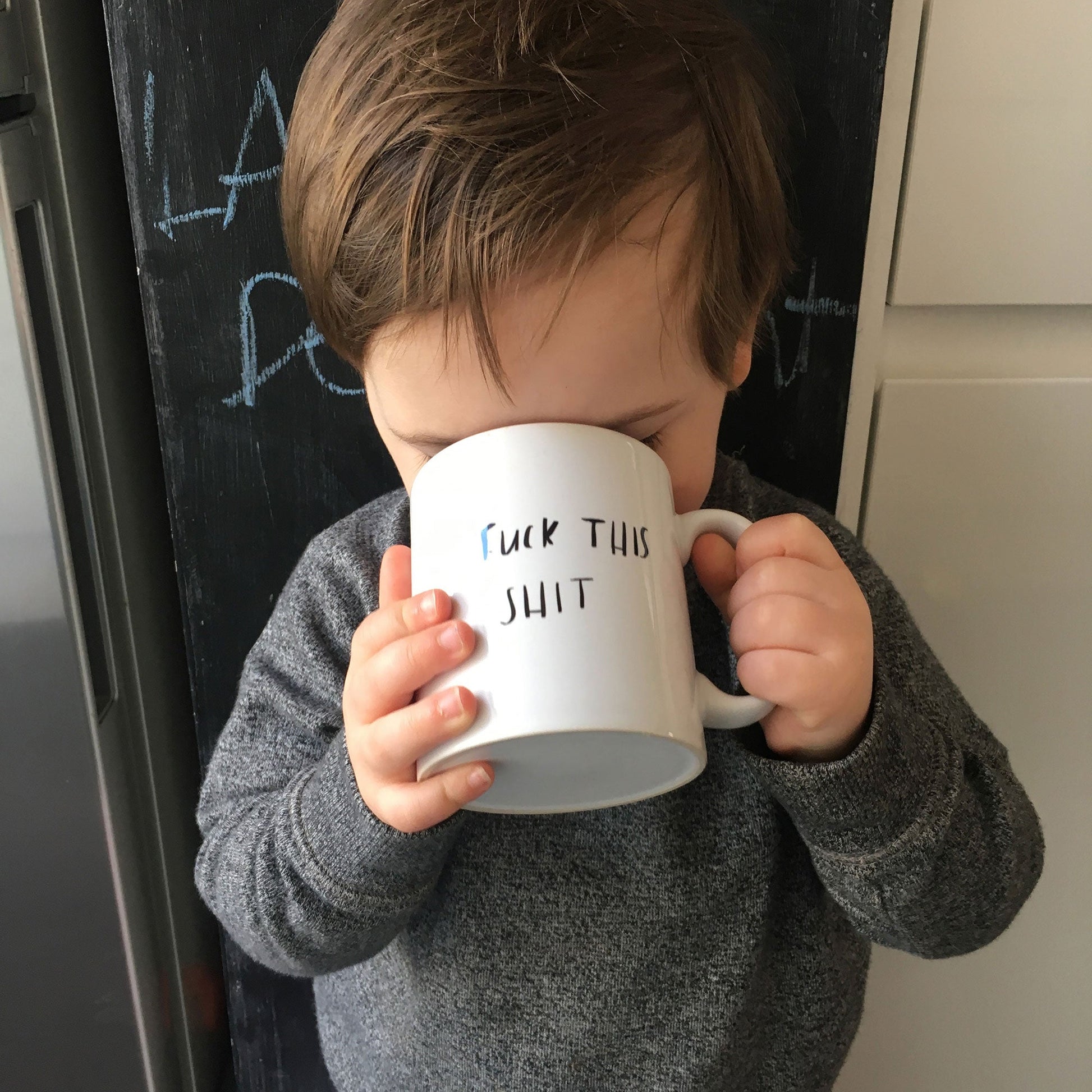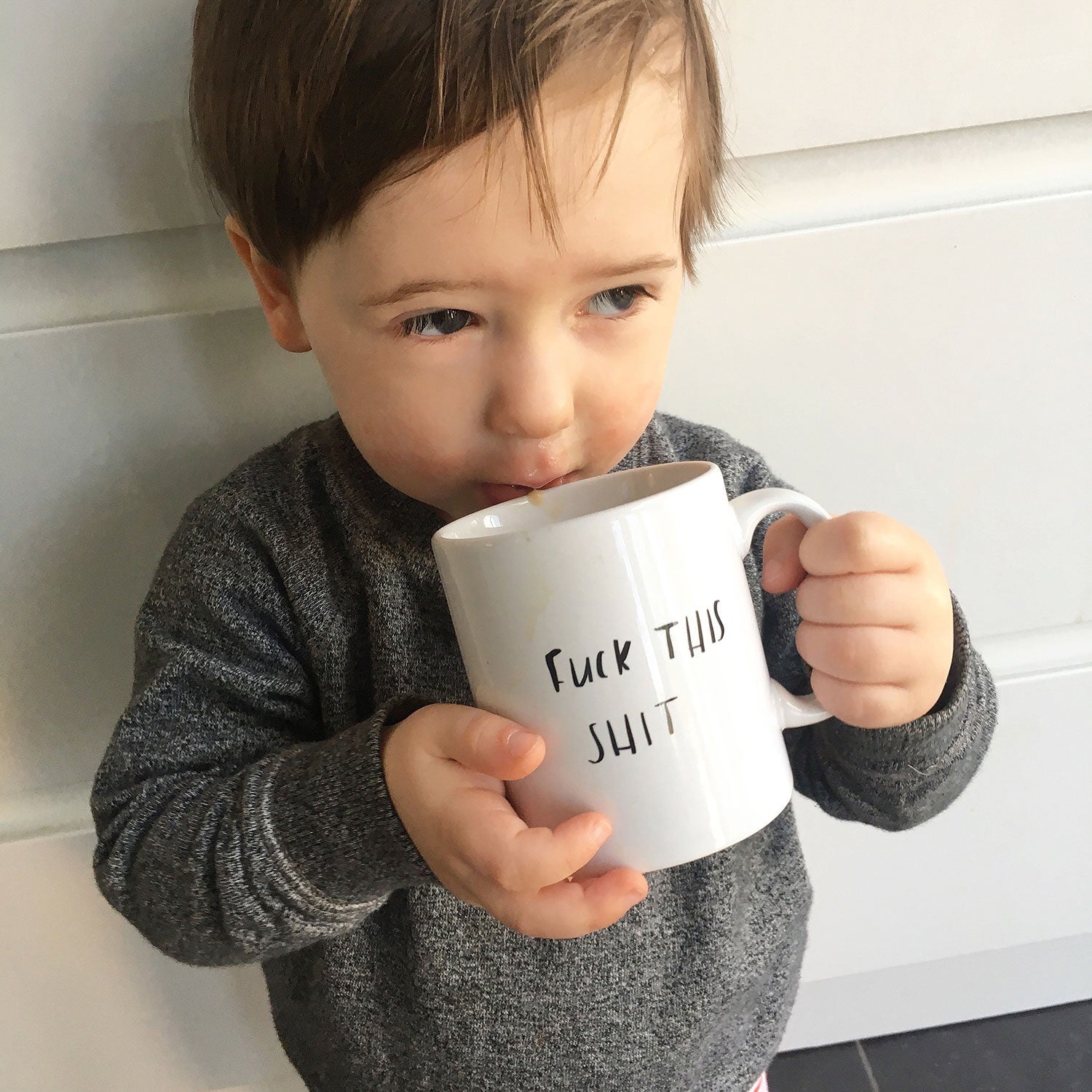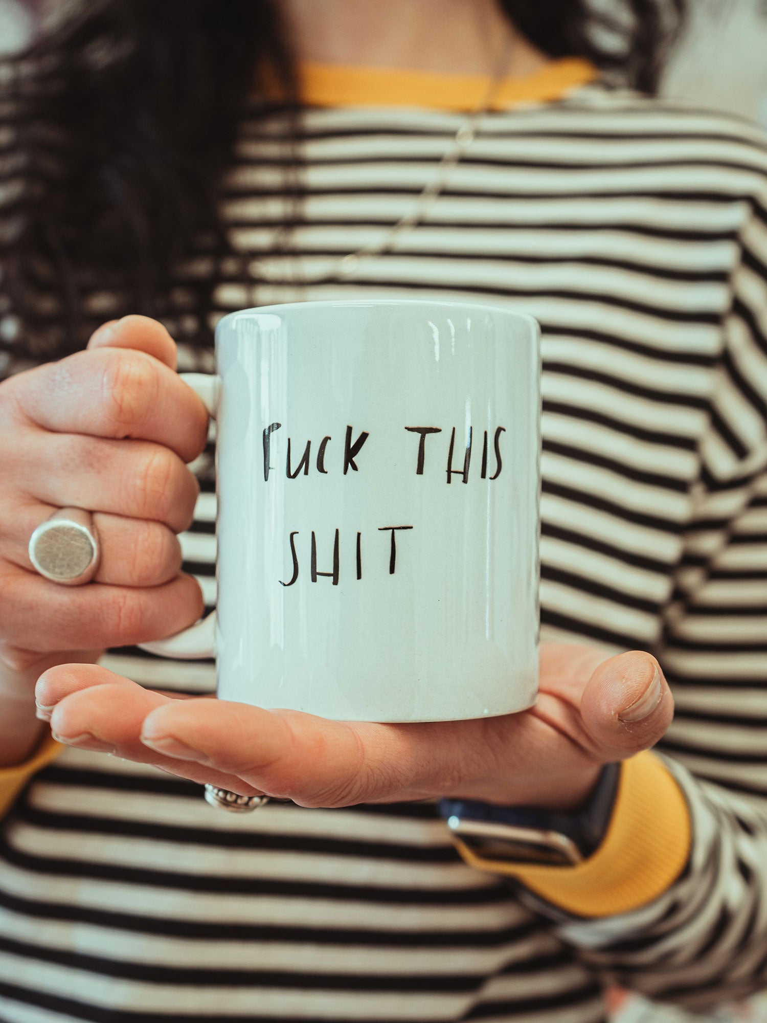 Front of mug reads "FUCK THIS SH!T" and back of mug has same exact design.