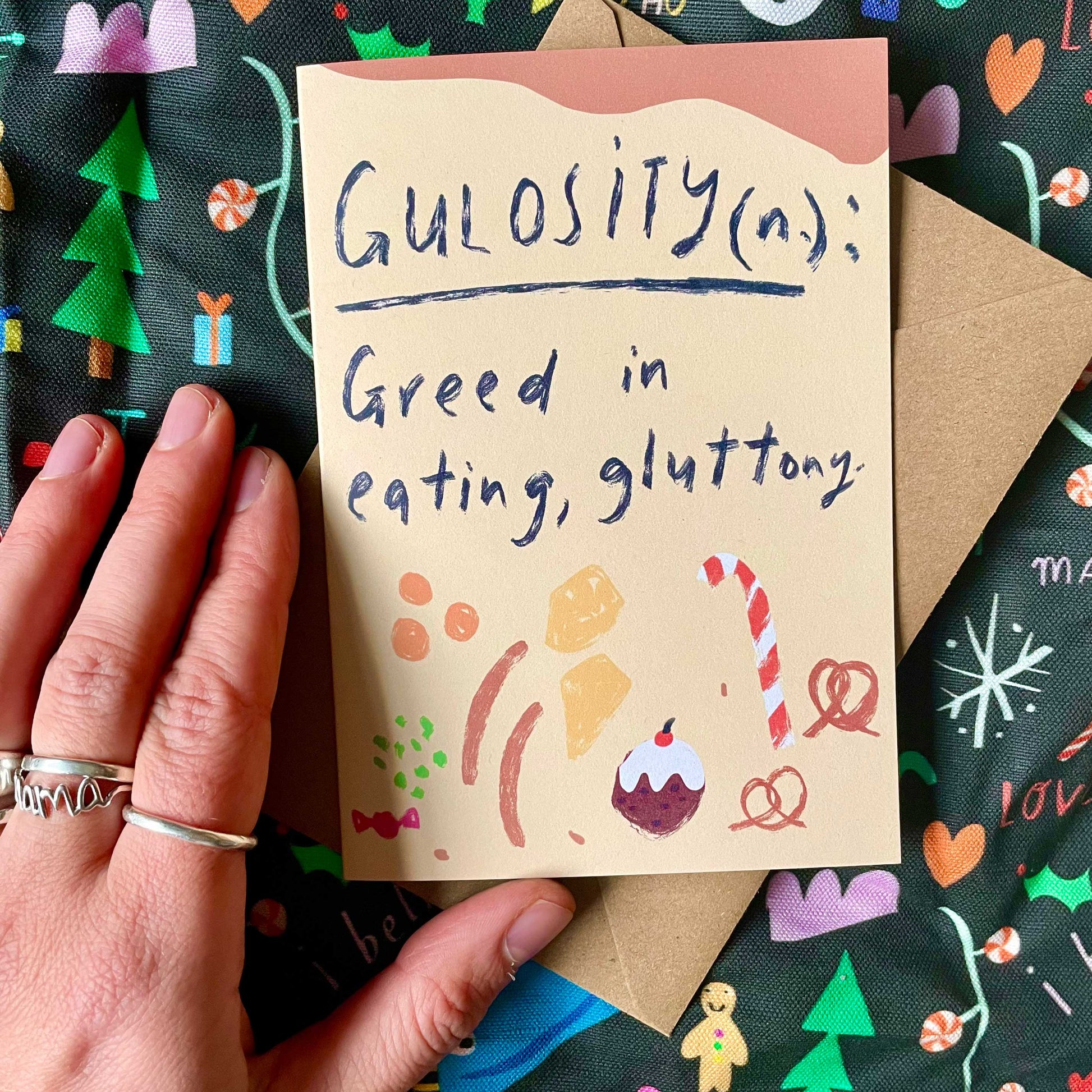 Standard A6 size greeting card designed by Nicola Rowlands and printed in the UK. Proudly printed on recycled card. Will be mailed to you in a hardback envelope and will include a brown recycled paper envelope. Card is blank inside for your own message. Cello bags made from cornstarch and are biodegradable.
