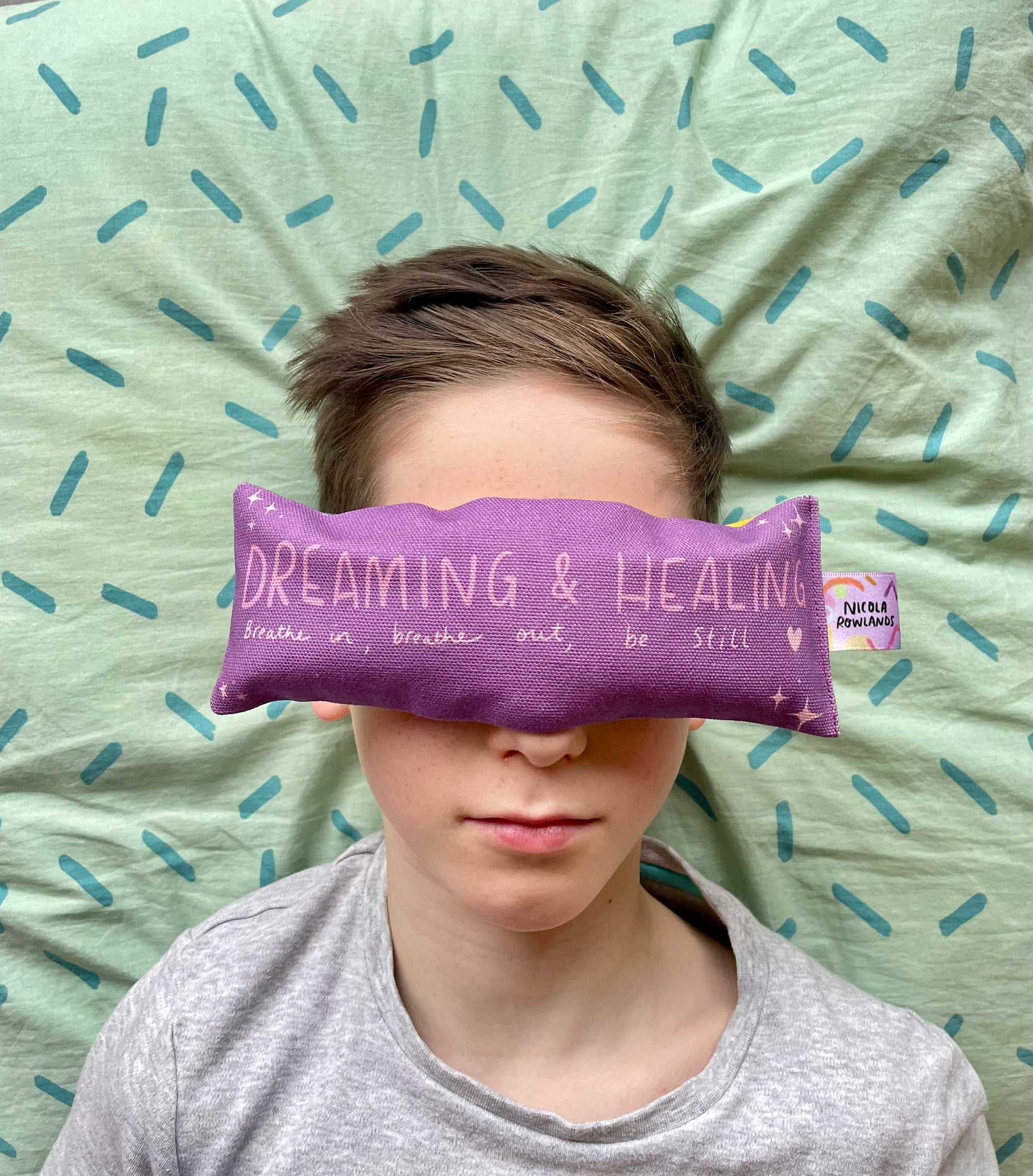 Organic fabric hand sewn in Manchester UK. Filled with organic pearl barley and Yorkshire grown organic lavender.