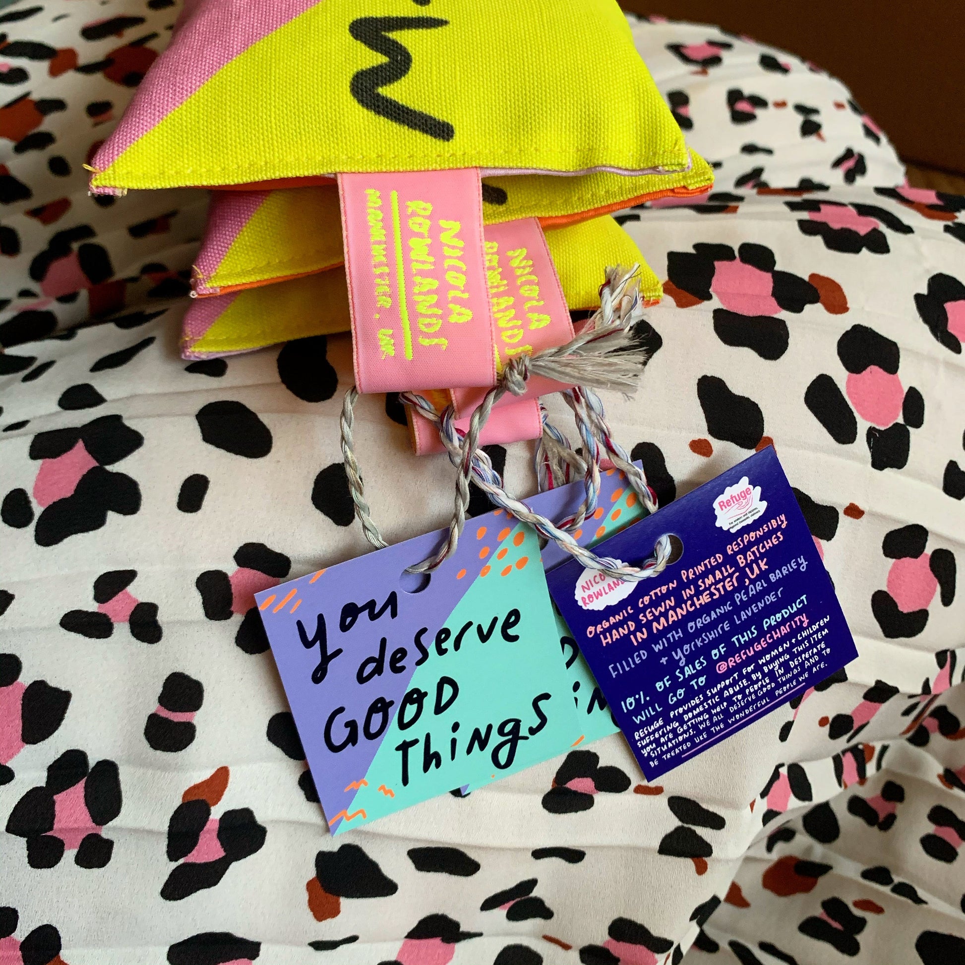 Organic fabric hand sewn in Manchester UK. Filled with organic pearl barley and Yorkshire grown organic lavender.