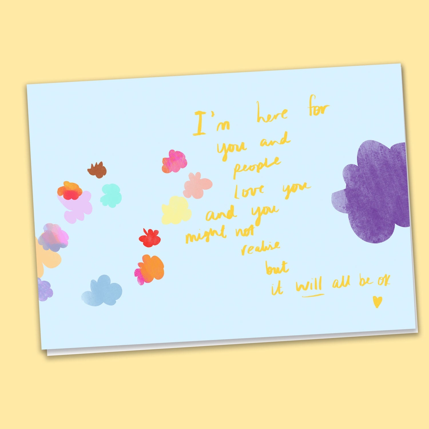 Standard A6 size greeting card designed by Nicola Rowlands and printed in the UK. Proudly printed on recycled card. Will be mailed to you in a hardback envelope and will include a brown recycled paper envelope. Card is blank inside for your own message. Cello bags made from cornstarch and are biodegradable.