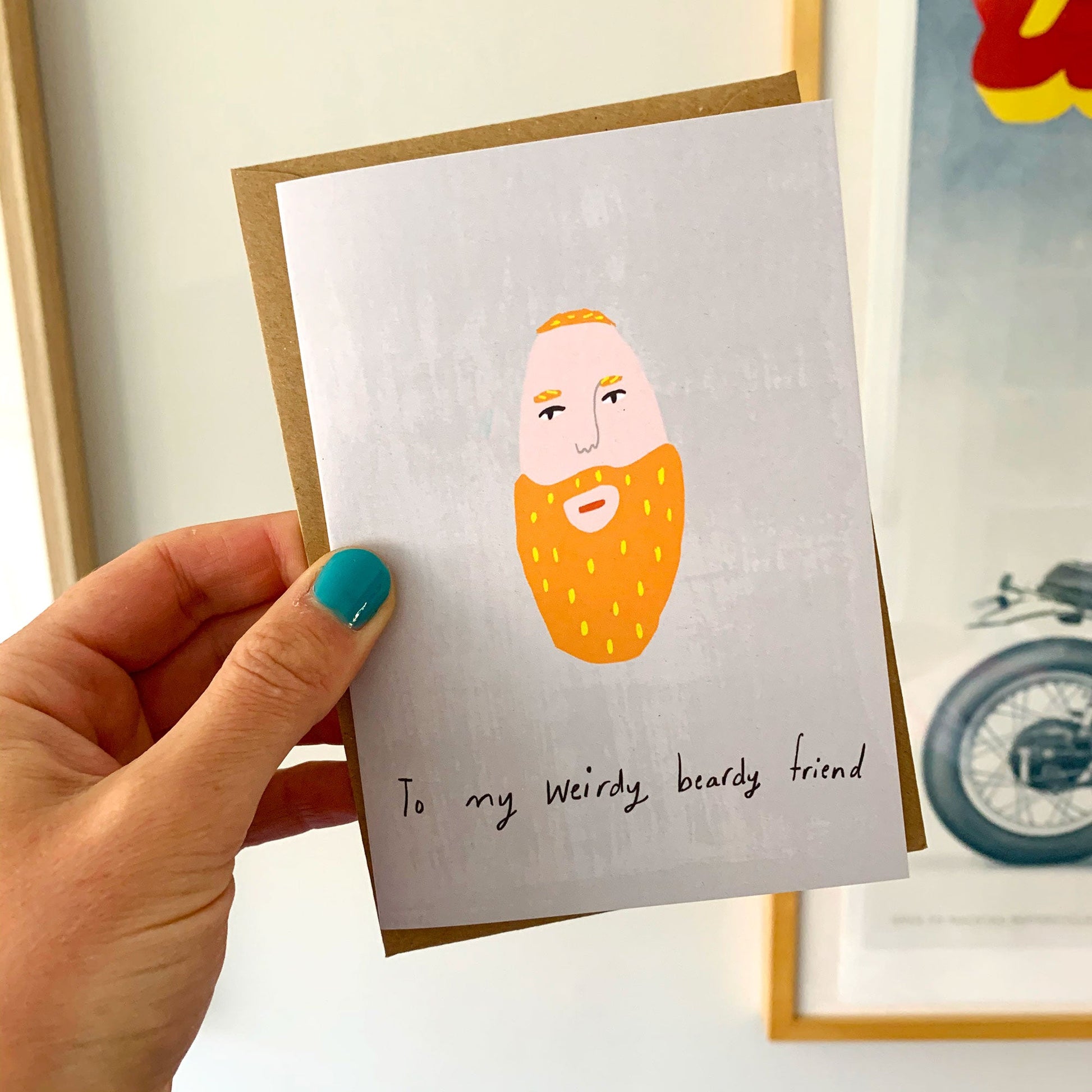 Standard A6 size greeting card designed by Nicola Rowlands and printed in the UK. Proudly printed on recycled card. Will be mailed to you in a hardback envelope and will include a brown recycled paper envelope. Card is blank inside for your own message. Cello bags made from cornstarch and are biodegradable.