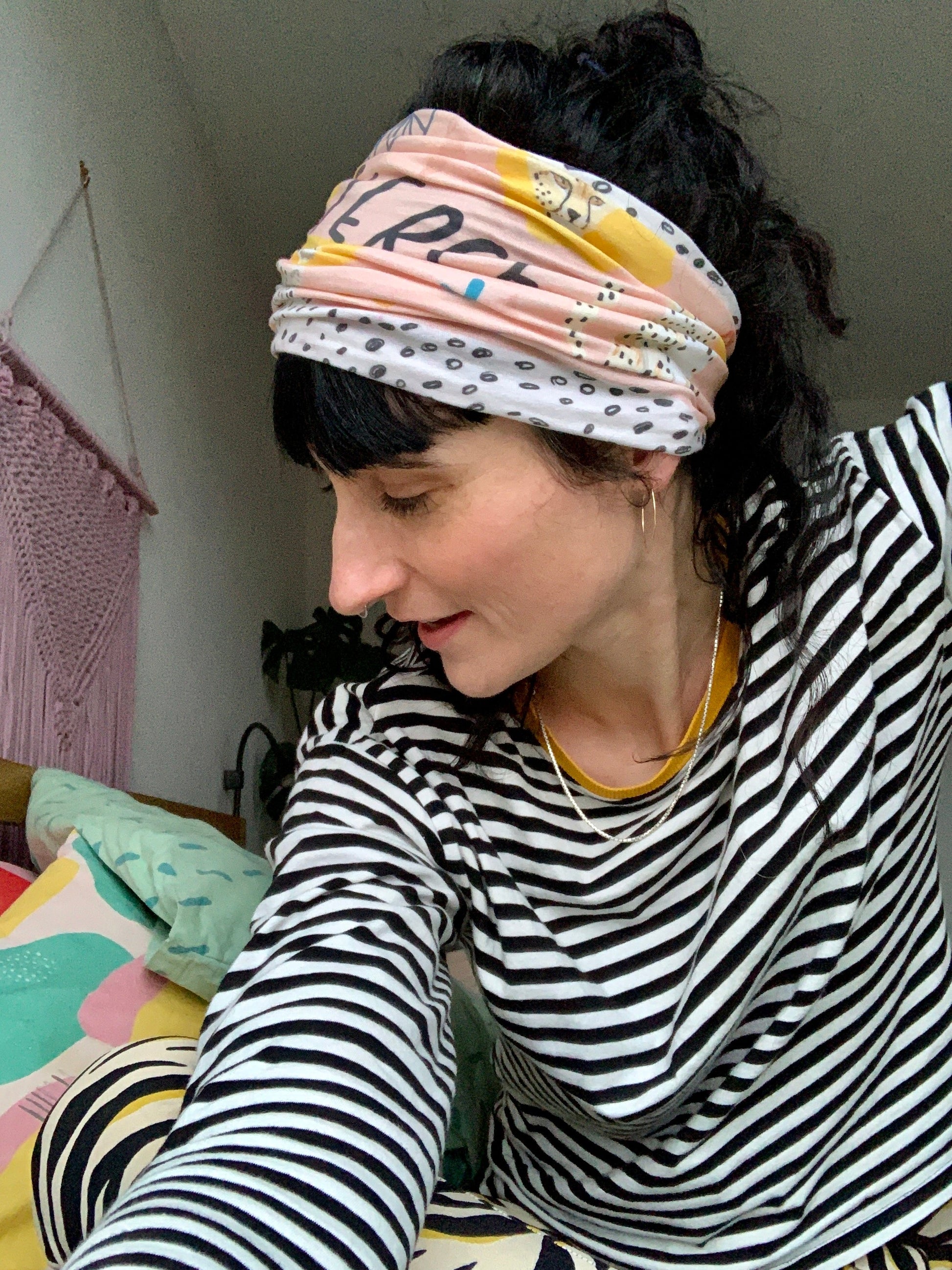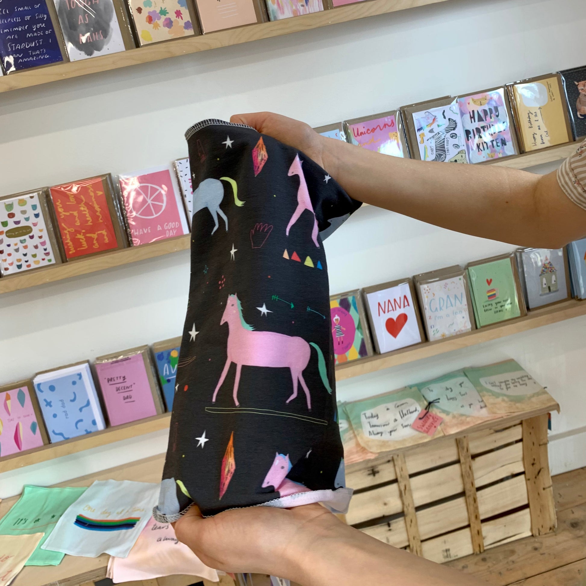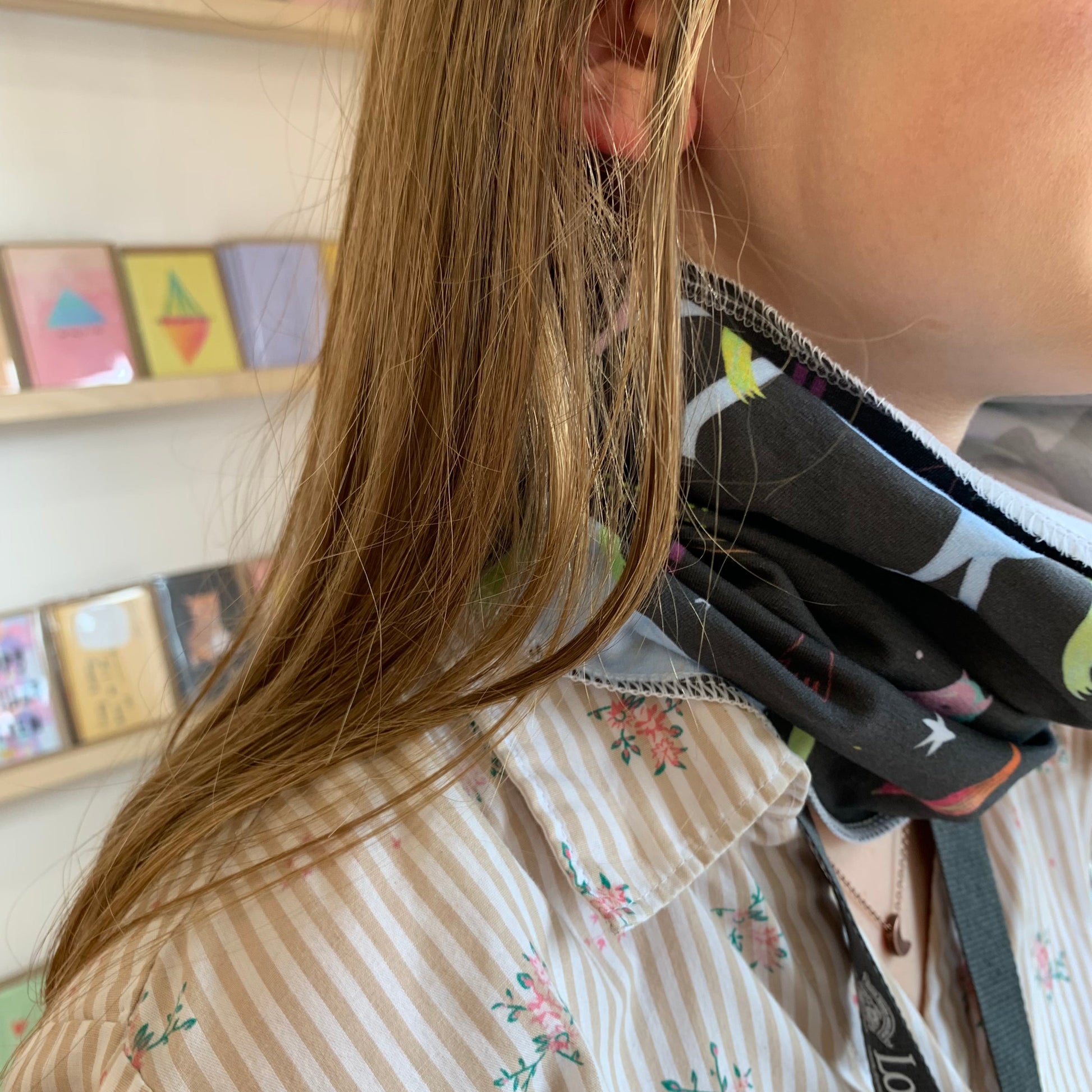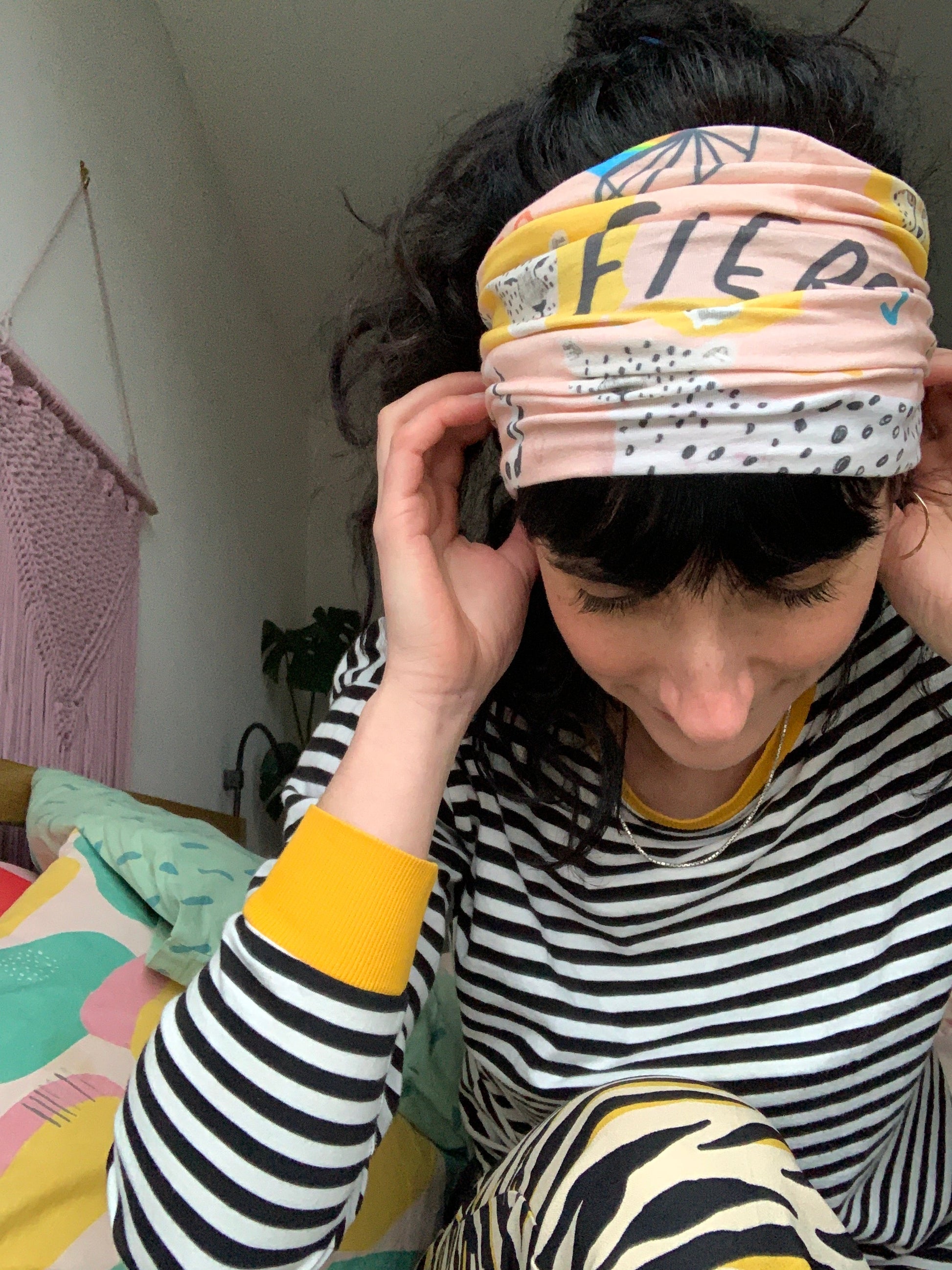 Use it as a headband / neck warmer / hair tie / face mask. Exclusive NR fabric, hand sewn in Manchester