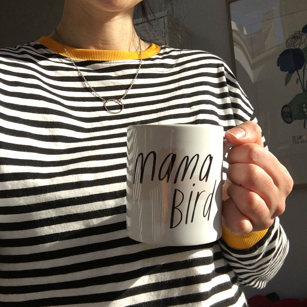 White with colour print ceramic mug. Dishwasher and microwave safe!