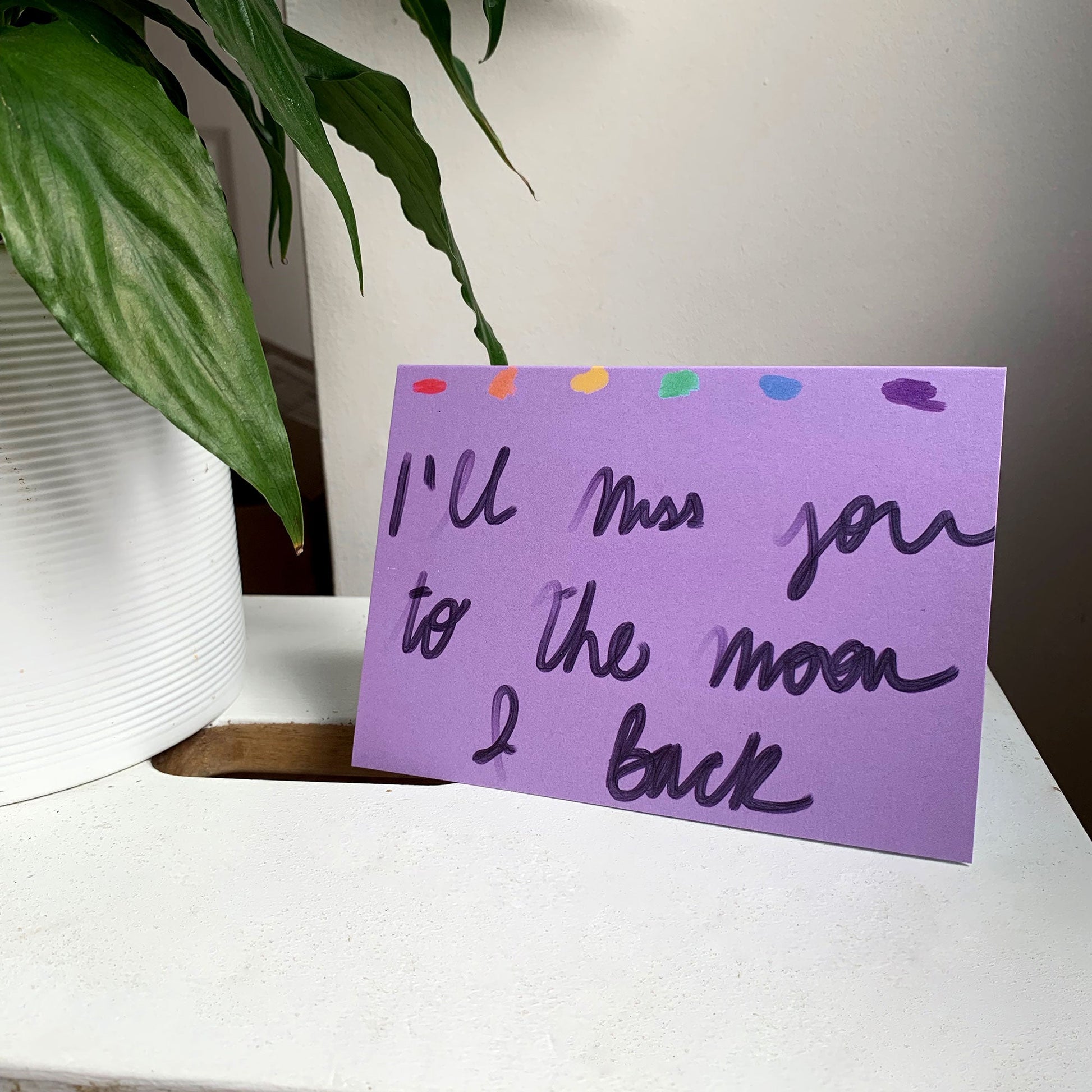 Standard A6 size greeting card designed by Nicola Rowlands and printed in the UK. Proudly printed on recycled card. Will be mailed to you in a hardback envelope and will include a brown recycled paper envelope. Card is blank inside for your own message. Cello bags made from cornstarch and are biodegradable.
