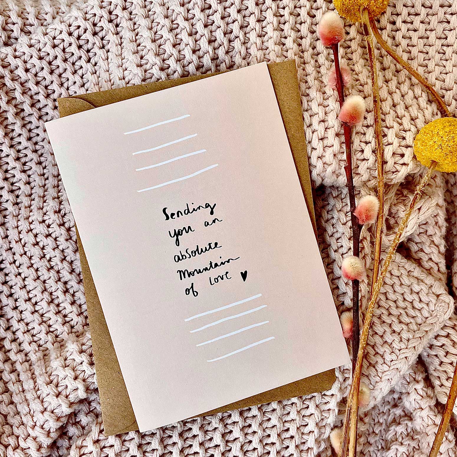 Standard A6 size greeting card designed by Nicola Rowlands and printed in the UK. Proudly printed on recycled card. Will be mailed to you in a hardback envelope and will include a brown recycled paper envelope. Card is blank inside for your own message. Cello bags made from cornstarch and are biodegradable.