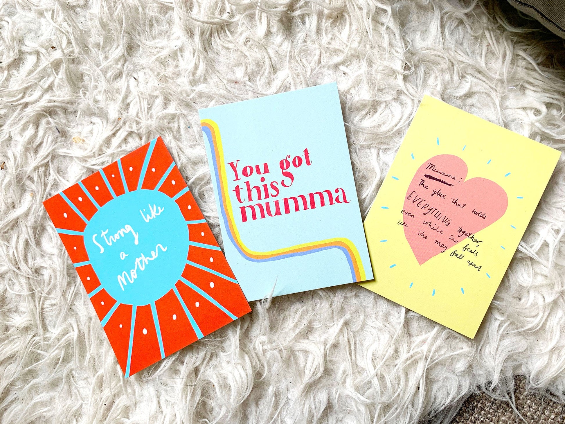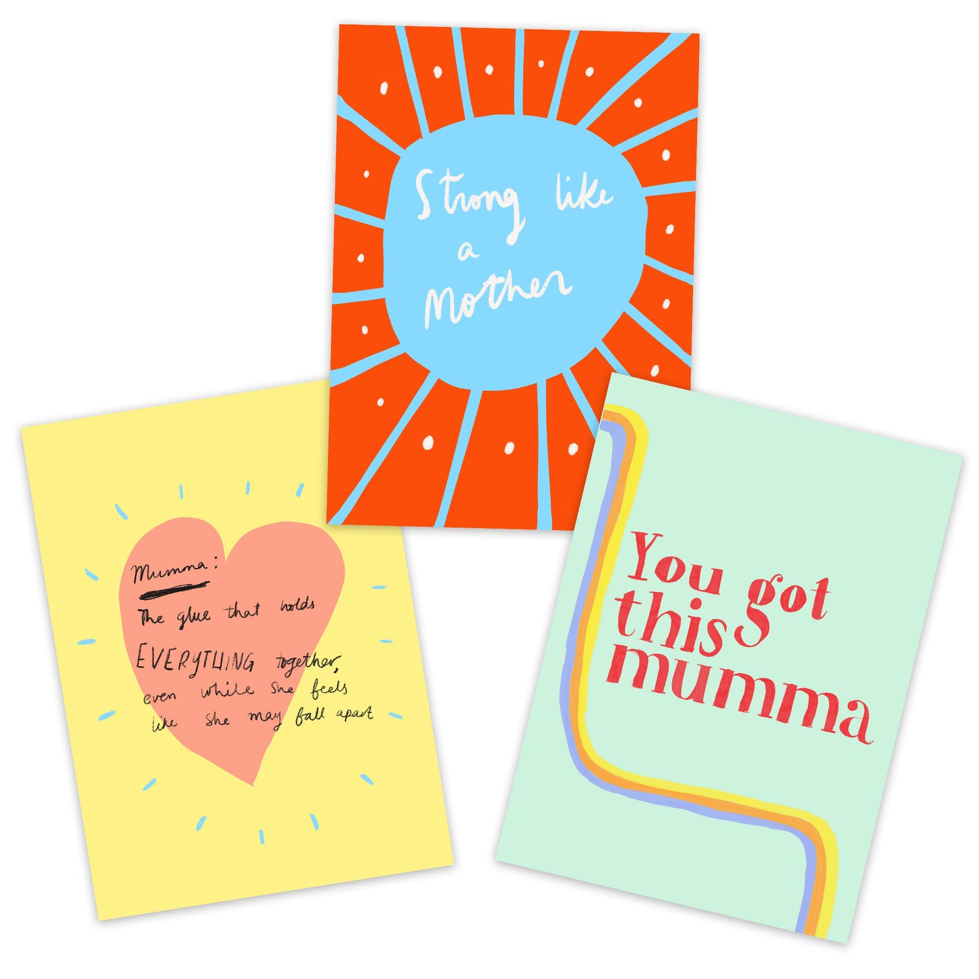 Set of 3 postcards for you to write Love Notes to your nearest and dearest Mama ladies in need of a pick me up. Contains one of each of the postcards shown.
