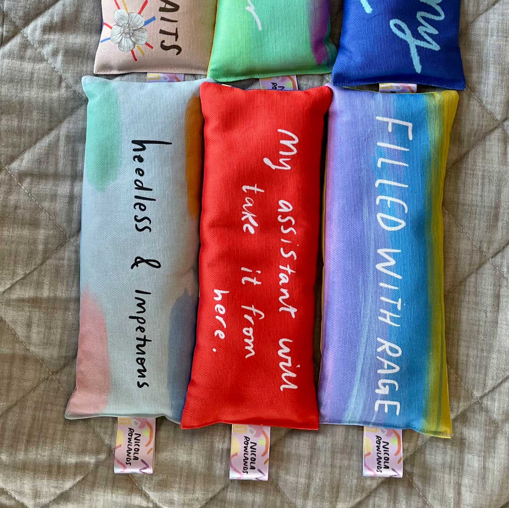 Nicola's iconic lavender eye pillows are colourful and filled with joy! (and lavender!) Say hello to the new collection, this is one of nine new designs for 2025!