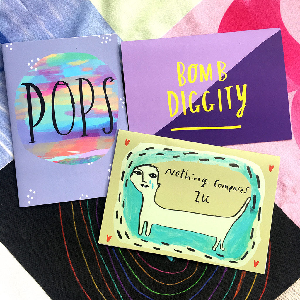 Standard A6 size greeting card designed by Nicola Rowlands and printed in the UK. Proudly printed on recycled card. Will be mailed to you in a hardback envelope and will include a brown recycled paper envelope. Card is blank inside for your own message. Cello bags made from cornstarch and are biodegradable.
