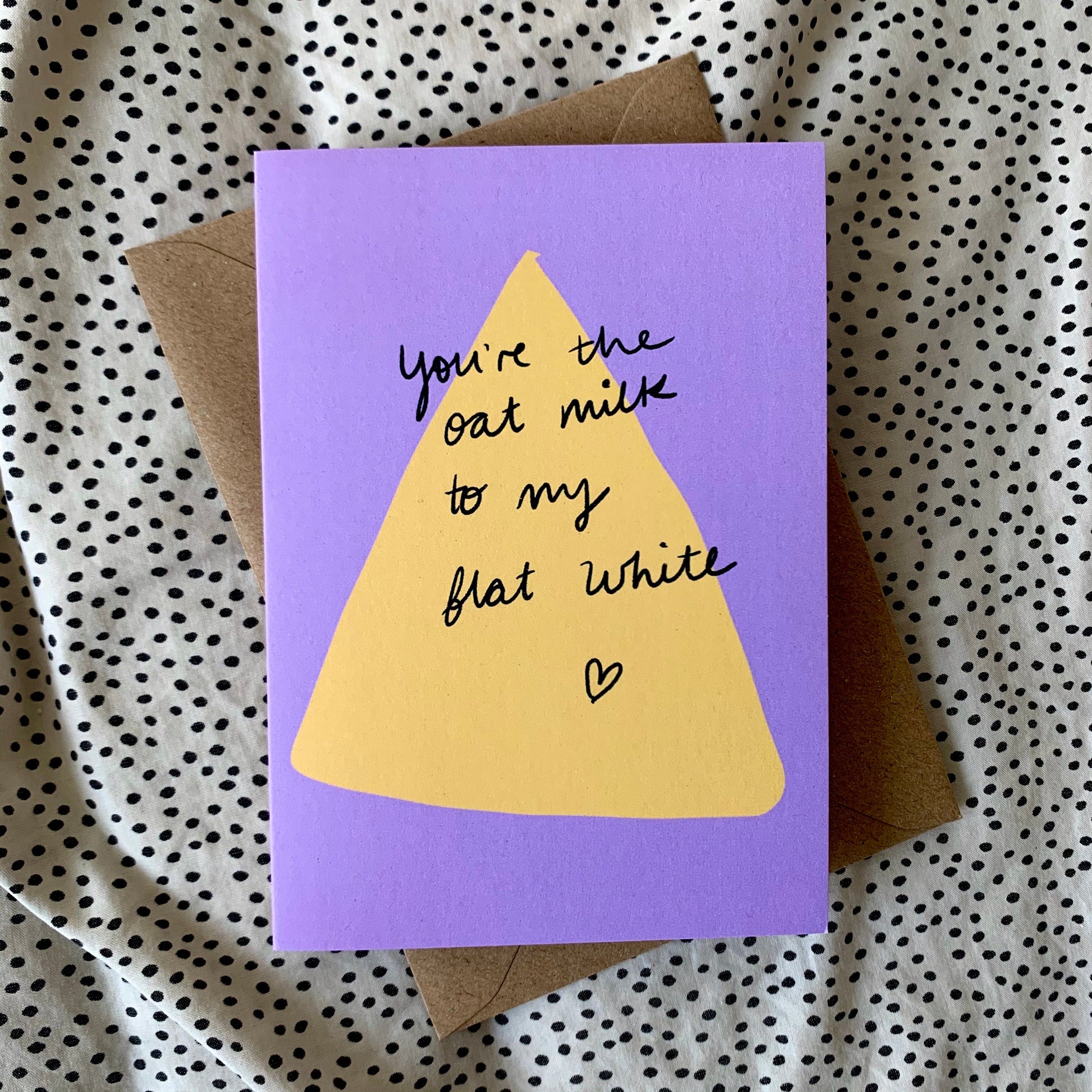 Standard A6 size greeting card designed by Nicola Rowlands and printed in the UK. Proudly printed on recycled card. Will be mailed to you in a hardback envelope and will include a brown recycled paper envelope. Card is blank inside for your own message. Cello bags made from cornstarch and are biodegradable.