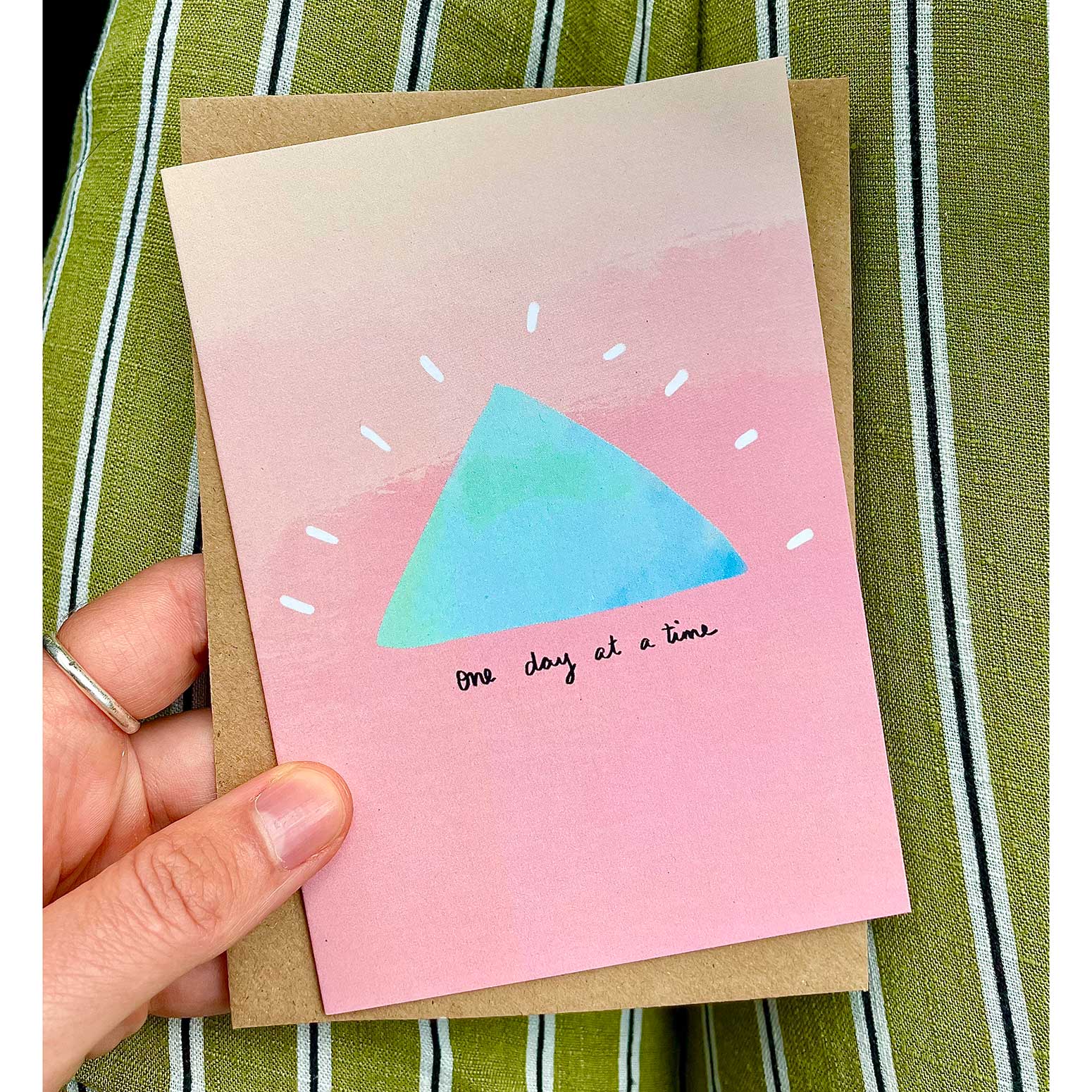 Standard A6 size greeting card designed by Nicola Rowlands and printed in the UK. Proudly printed on recycled card. Will be mailed to you in a hardback envelope and will include a brown recycled paper envelope. Card is blank inside for your own message. Cello bags made from cornstarch and are biodegradable.