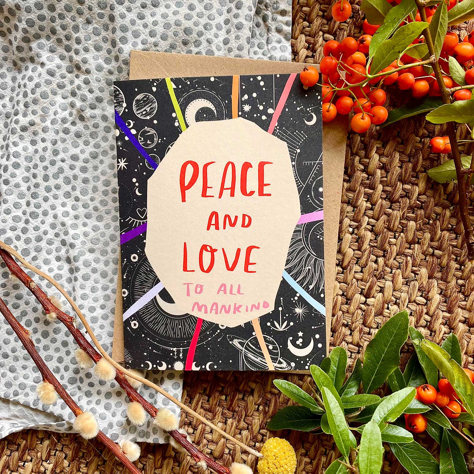 Standard A6 size greeting card designed by Nicola Rowlands and printed in the UK. Proudly printed on recycled card. Will be mailed to you in a hardback envelope and will include a brown recycled paper envelope. Card is blank inside for your own message. Cello bags made from cornstarch and are biodegradable.