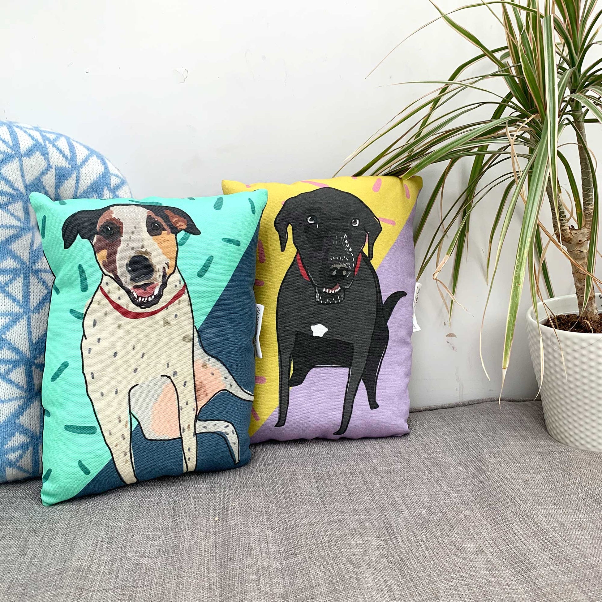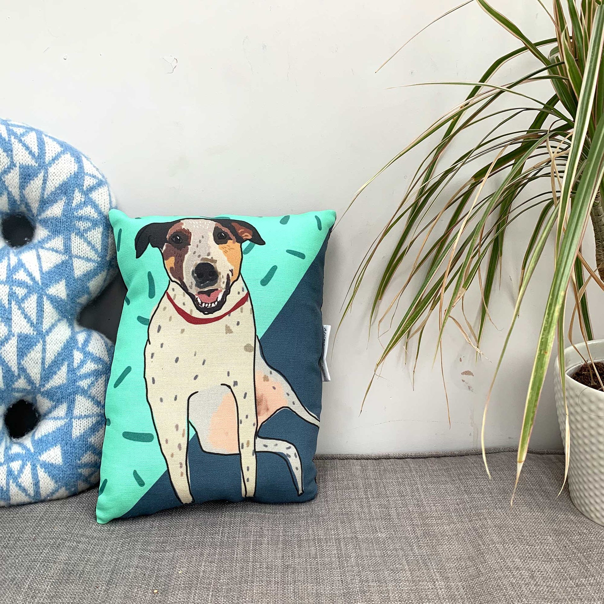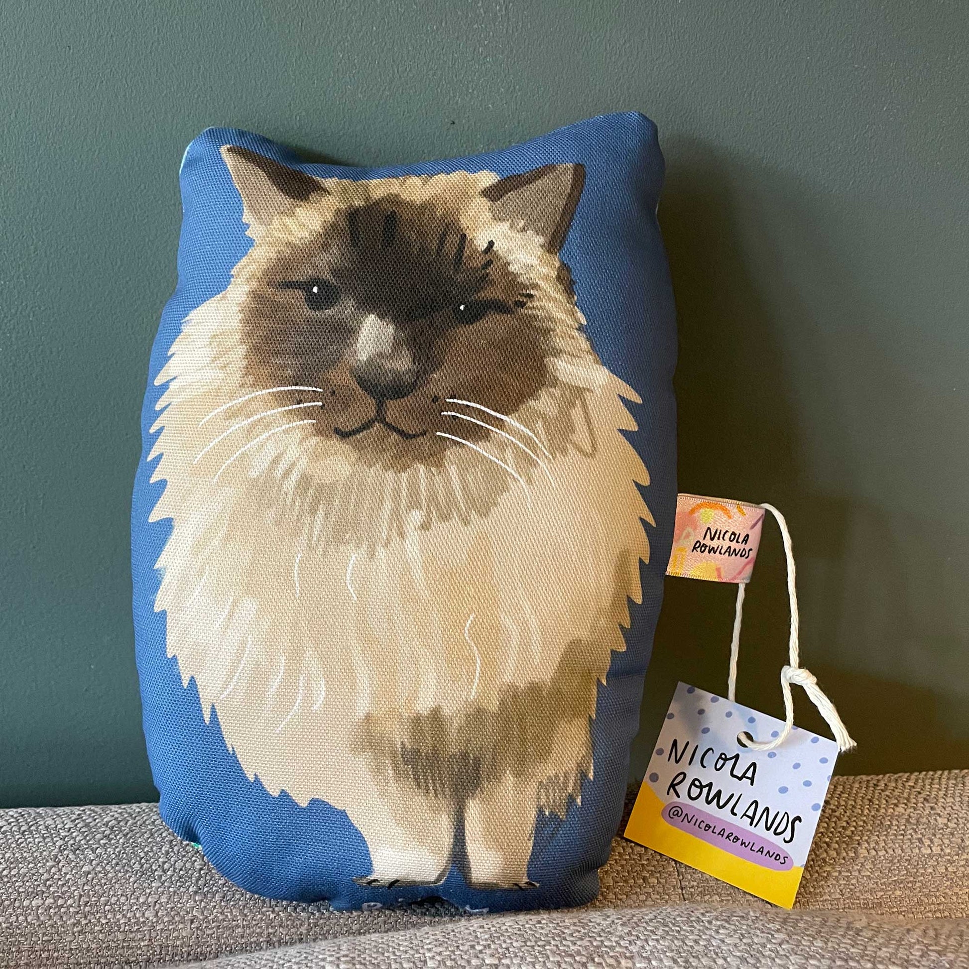 Front is a heavyweight upholstery twill and back is a coloured cotton fabric. Sewn and stuffed in Manchester UK. Designed by Nicola Rowlands.