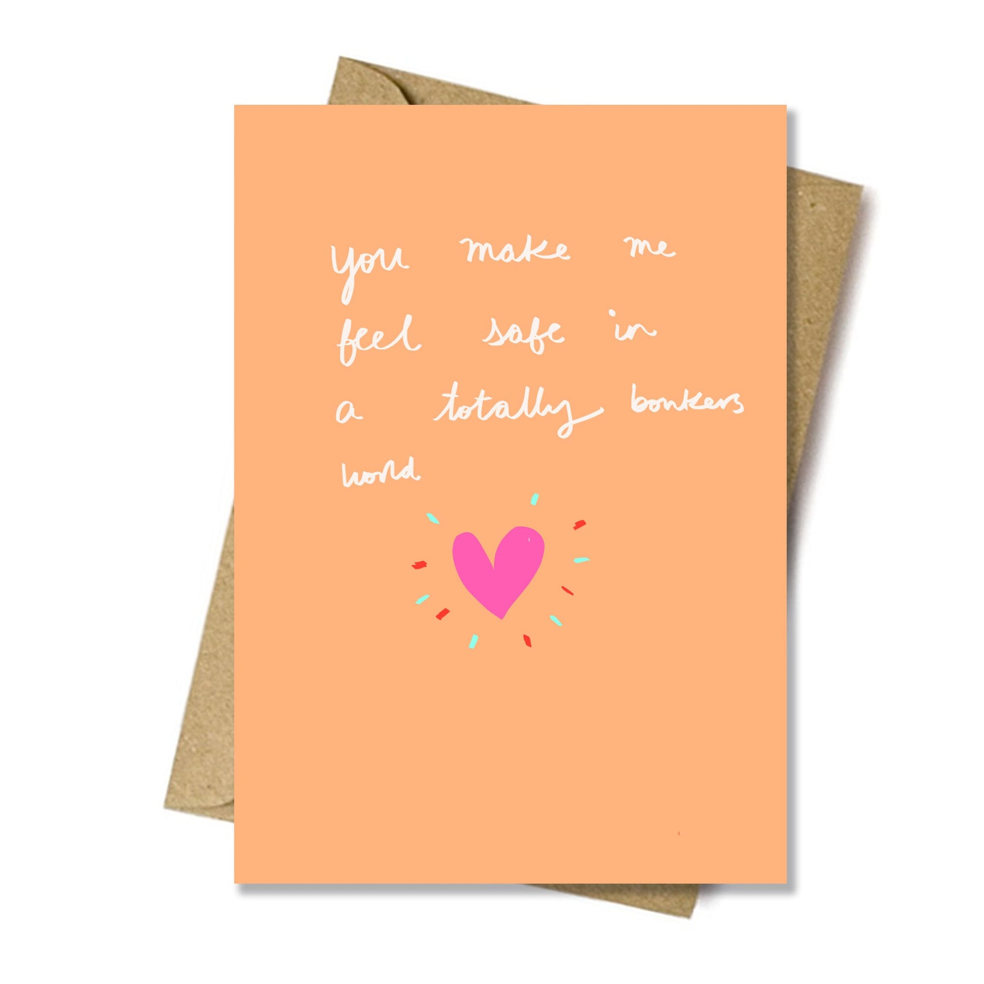 Standard A6 size greeting card designed by Nicola Rowlands and printed in the UK. Proudly printed on recycled card. Will be mailed to you in a hardback envelope and will include a brown recycled paper envelope. Card is blank inside for your own message. Cello bags made from cornstarch and are biodegradable.