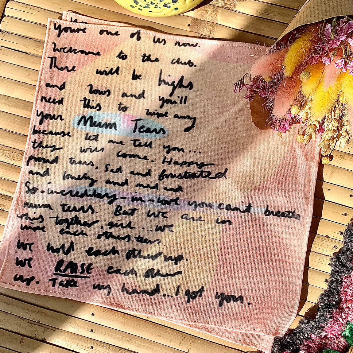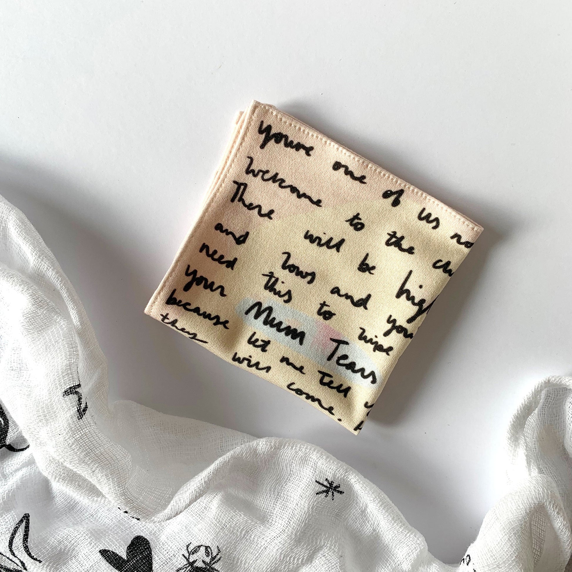 Made from gorgeous soft organic cotton knit, printed in Berlin and hand sewn in Manchester these hankies make the loveliest gifts for a new mama.