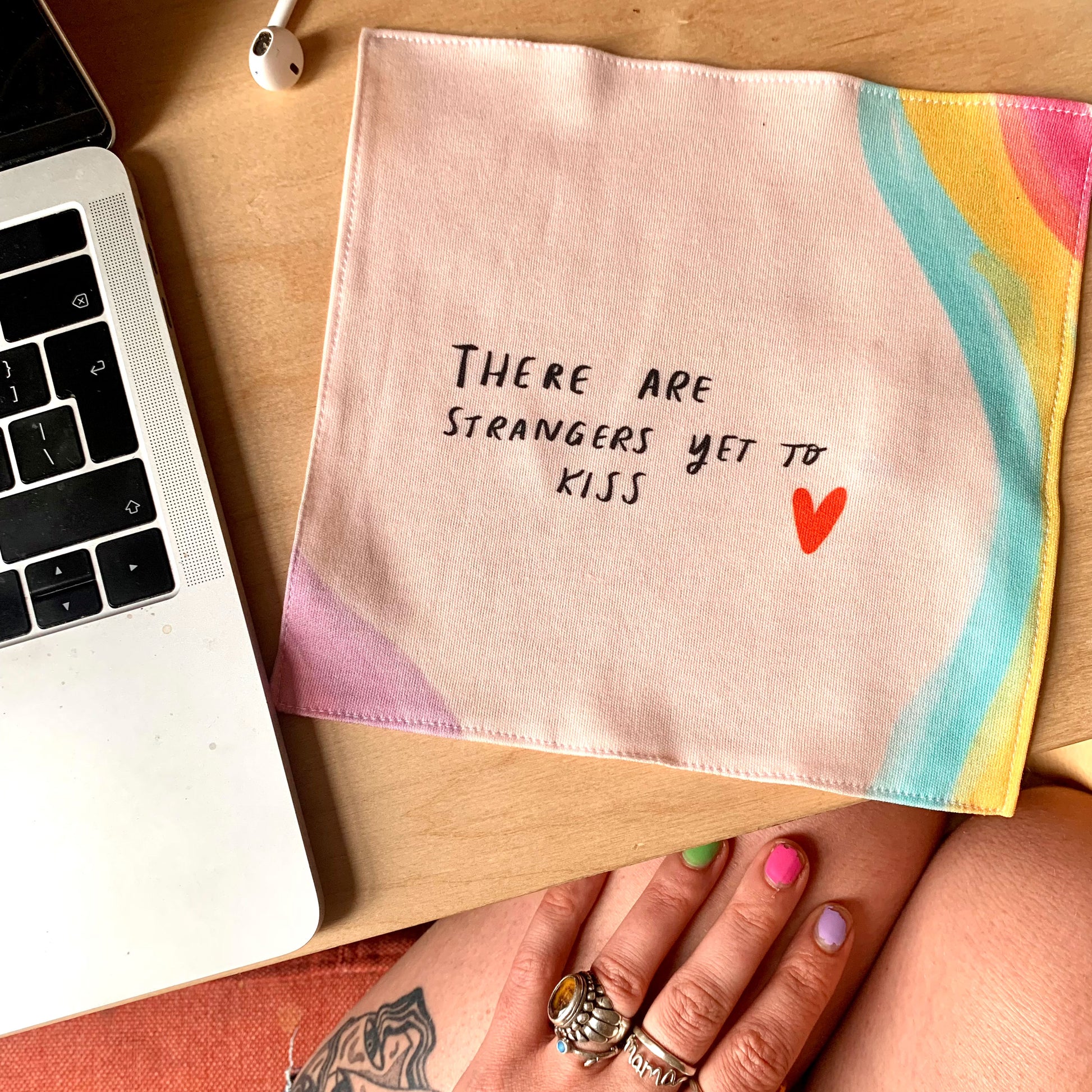 Strangers yet to kiss organic cotton handkerchief