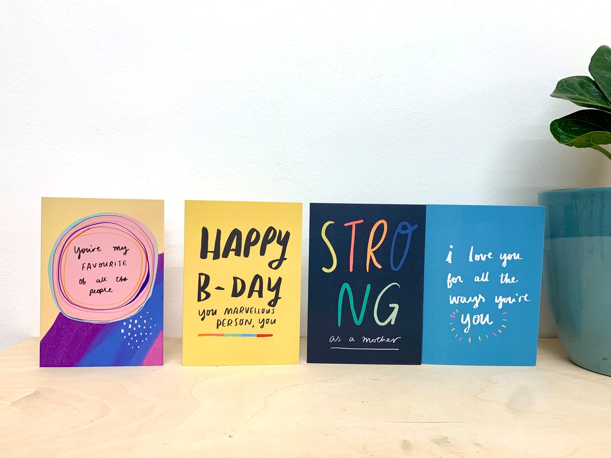 Standard A6 size greeting card designed by Nicola Rowlands and printed in the UK. Proudly printed on recycled card. Will be mailed to you in a hardback envelope and will include a brown recycled paper envelope. Card is blank inside for your own message. Cello bags made from cornstarch and are biodegradable.