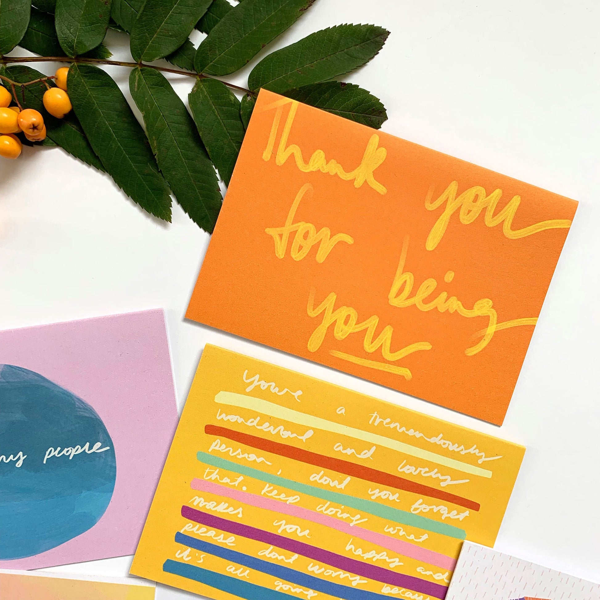 Standard A6 size greeting card designed by Nicola Rowlands and printed in the UK. Proudly printed on recycled card. Will be mailed to you in a hardback envelope and will include a brown recycled paper envelope. Card is blank inside for your own message. Cello bags made from cornstarch and are biodegradable.