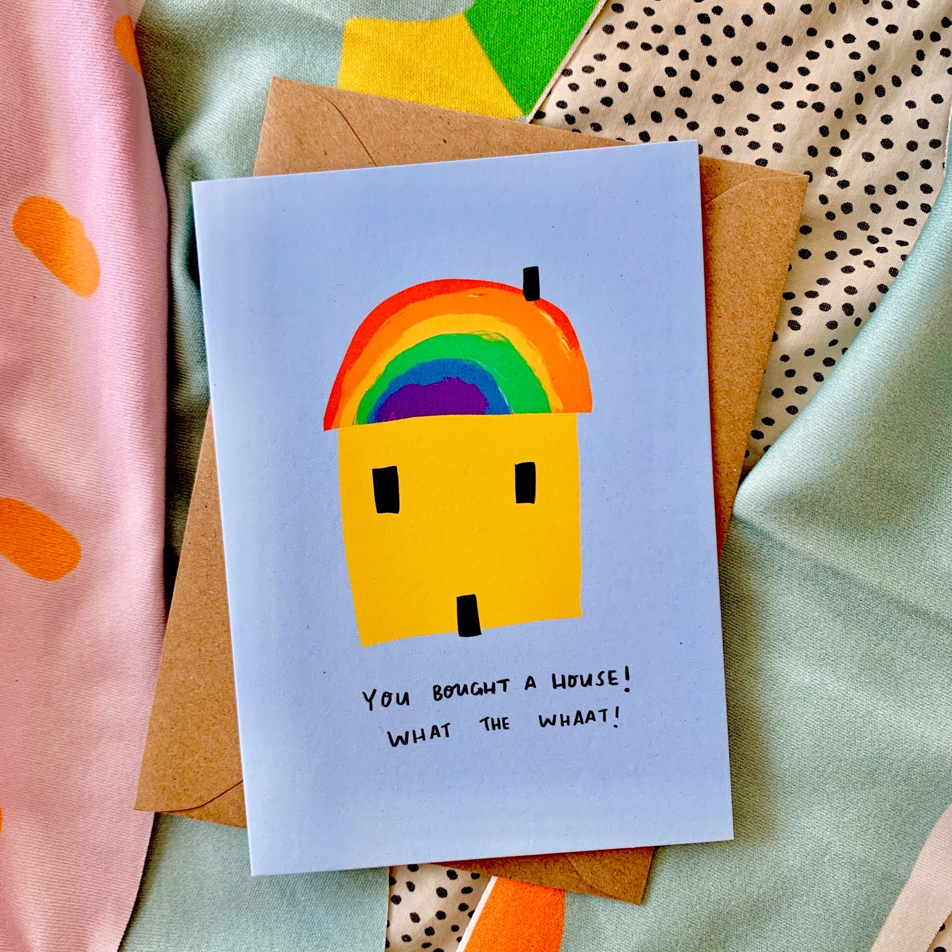 Standard A6 size greeting card designed by Nicola Rowlands and printed in the UK. Proudly printed on recycled card. Will be mailed to you in a hardback envelope and will include a brown recycled paper envelope. Card is blank inside for your own message. Cello bags made from cornstarch and are biodegradable.