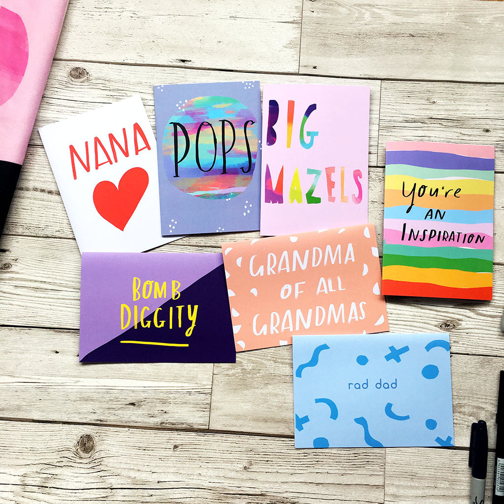 Standard A6 size greeting card designed by Nicola Rowlands and printed in the UK. Proudly printed on recycled card. Will be mailed to you in a hardback envelope and will include a brown recycled paper envelope. Card is blank inside for your own message. Cello bags made from cornstarch and are biodegradable.